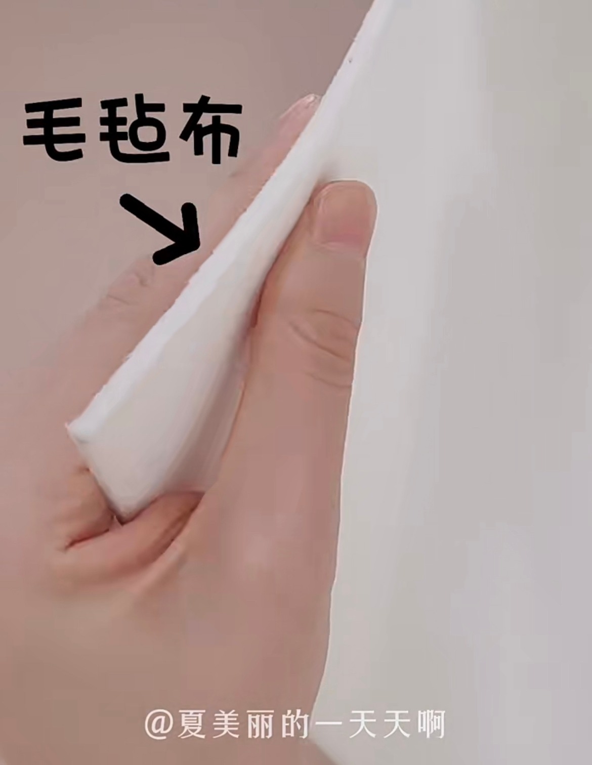 在縫的時候可將針側著從毛氈布的中間穿過,不要穿透到最外層,把縫合的痕跡隱藏在背面。