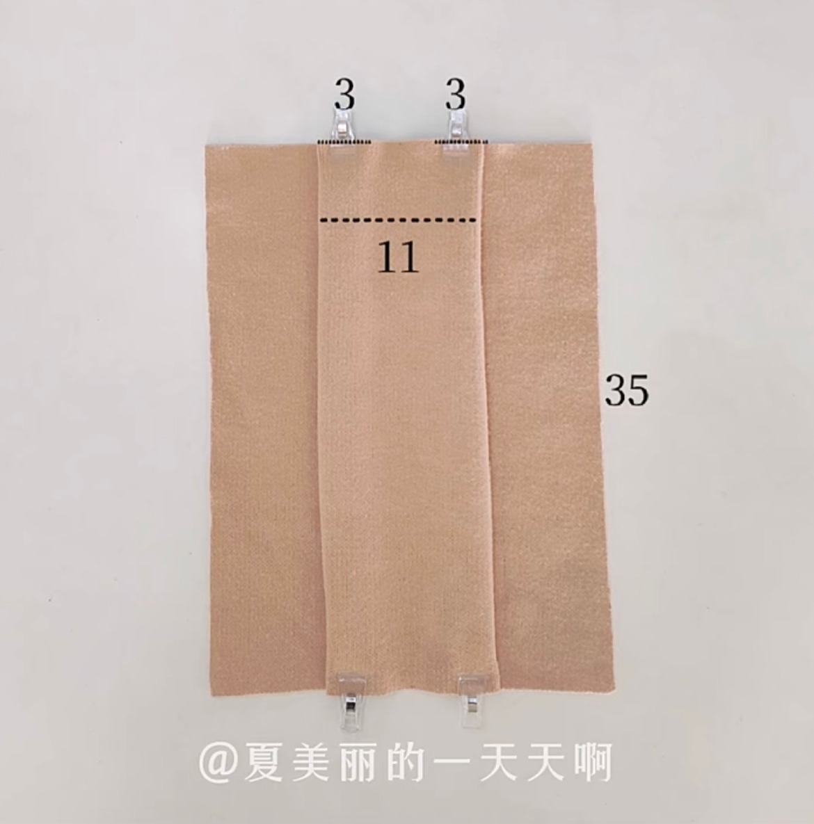 而這塊長方形針織布料的上下兩條邊則可以留著先不縫合。