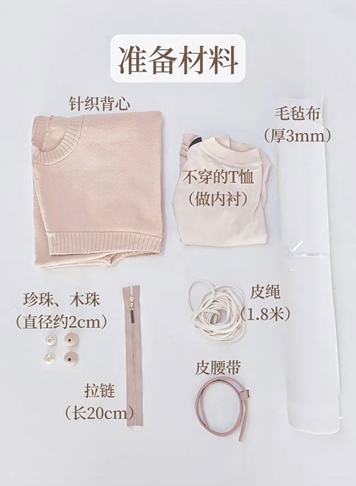再從背心的下擺剪出一片38x10厘米的長方形,再剪出35x3厘米的毛氈布。