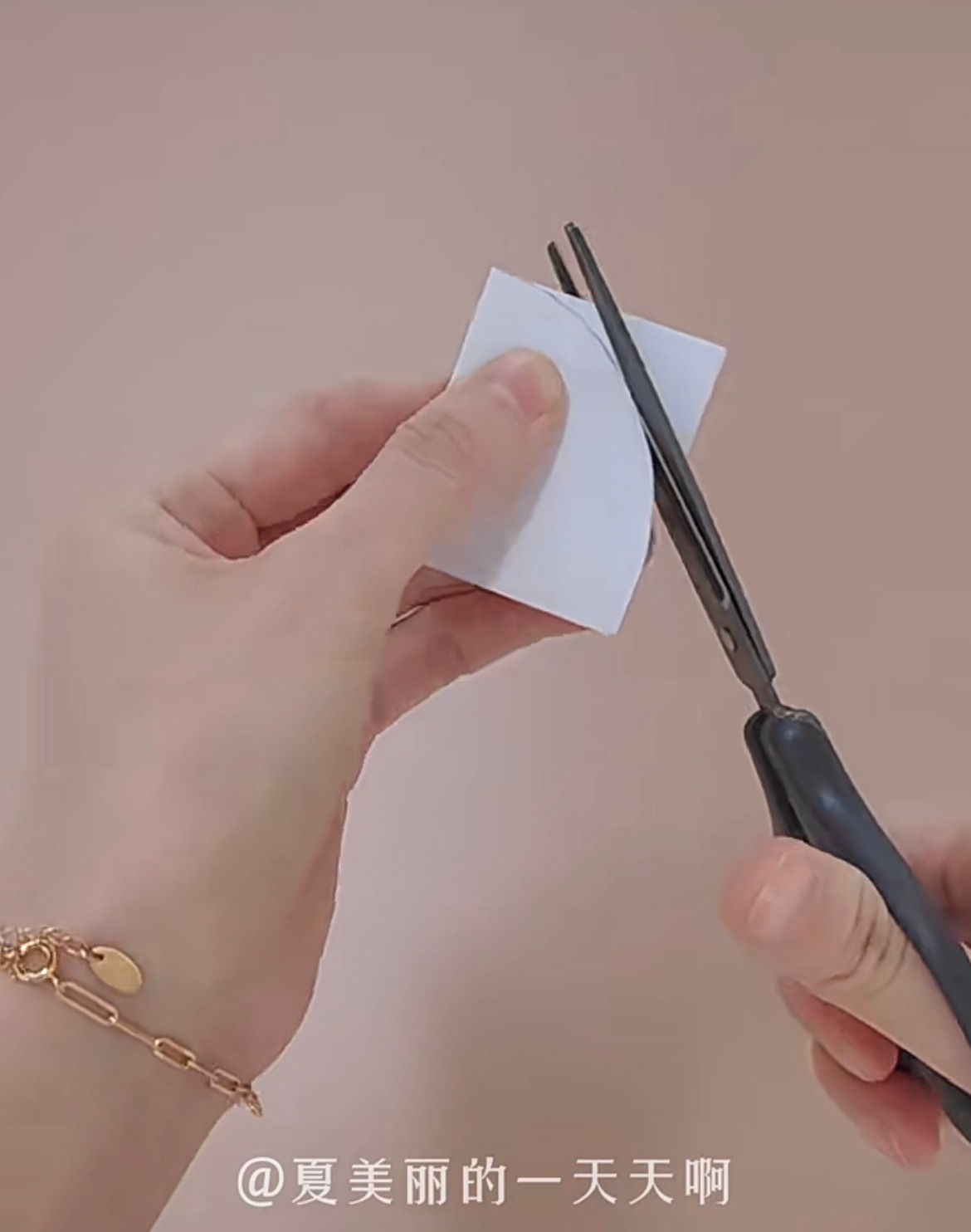 然後在這個角上面畫出孤線,再沿著邊緣剪下來,就會得到一個橢圓形的紙片。