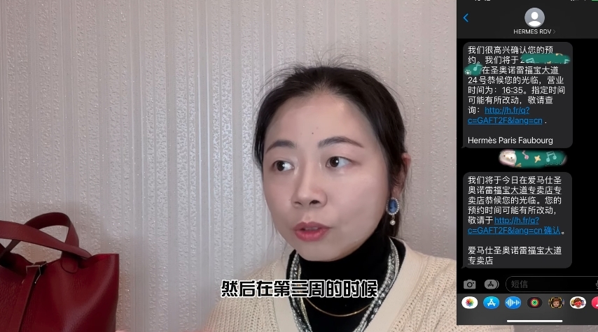 博主在出發去巴黎前就用自己與丈夫的護照號碼進行預約,她提到在網上搜尋「巴黎愛馬仕預約」就可以進行預約,在當天晚上8點半到9點半會有郵件通知你,預約是否成功,如成功會發短信通知。最後博主嘗試預約20多天才成功,不過就強調只要成功預約就大機會買到手袋。