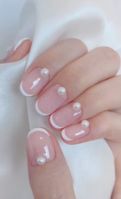 「法式美甲」簡約又優雅,又能突顯出溫柔感,是不少女生的至愛,即使是普通日子也能夠輕鬆駕駛。但如果想在婚禮日誇張一點,不妨再在法式美甲上添加珍珠,增加華麗感,令你舉手投足都散發強烈的女人味!
