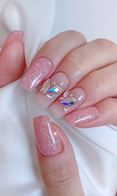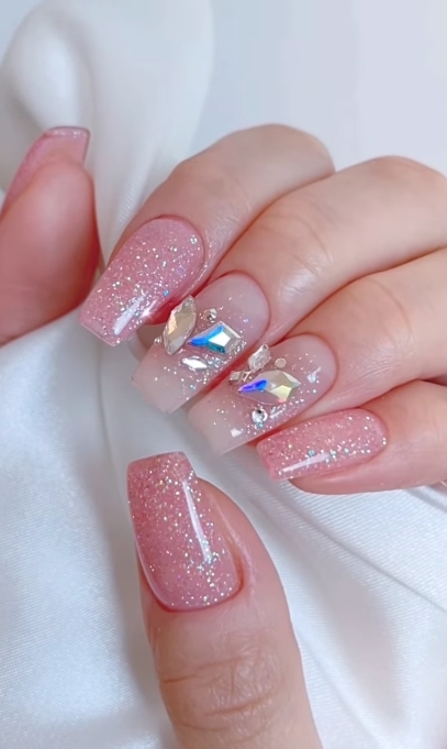 粉色美甲本來就很浪漫又優雅,再在美甲邊緣加上閃粉,看起來很有質感,低調中又滲透著淡淡的高貴感,算是簡約得來又有點小心機的款式,適合喜歡清新款的女生!