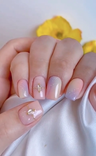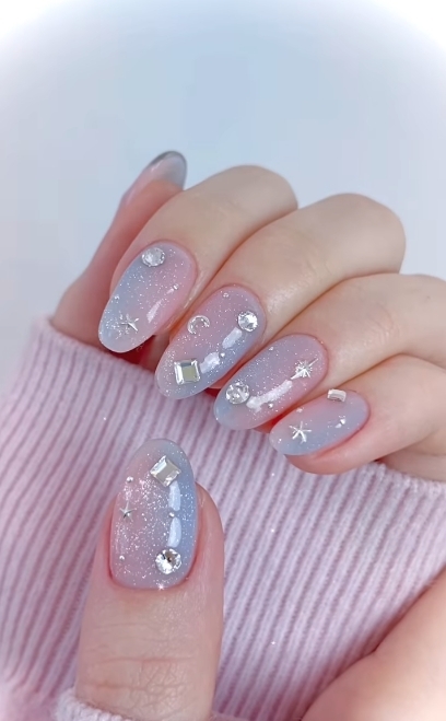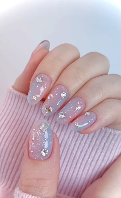 假如不想過於花巧但又想玩玩新意思,可選擇「漸變粉紫美甲」,給人一種公主的感覺,可再在美甲上加入不同形狀的鑽石,令美甲閃亮光澤超搶眼的同時,還能增加層次感,精緻又耐看!
