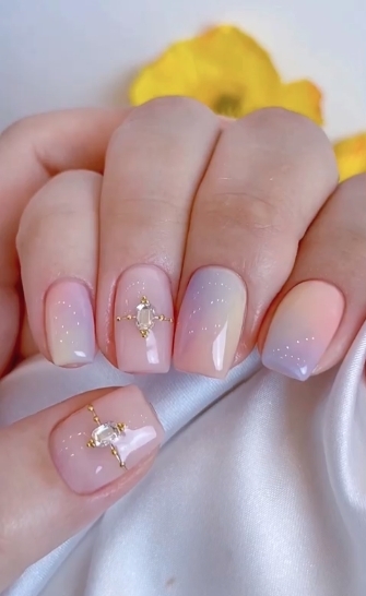 充滿馬卡龍情調的「彩虹漸變美甲」一向都是女生們的最愛,浪漫又優雅,讓人幸福感十足。再加上寶石的點綴,折射出來的光芒真的超級美,很適合甜美型的女生,而且配搭婚紗絕對沒有違和感!