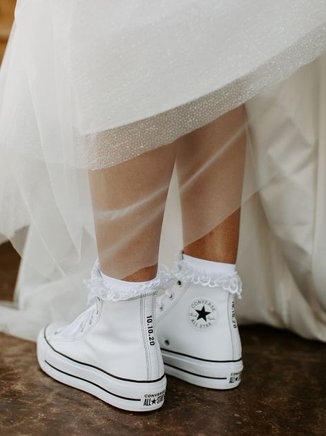 相信大家一看到白婚紗自然會想找一對漂亮又高貴的高踭婚鞋搭配,但其實婚紗不一定要襯高踭鞋才算好看及得體,揀一對夢幻又時尚的小白鞋同樣能展現出優雅又有氣質的一面~不少明星新娘的婚紗底下都是以小白鞋搭配,像是舒淇、安以軒、韓國女演員孔曉振等,長時間穿著舒服又唔怕刮腳,而且婚禮過後用來日常穿搭都毫無違和感,絕對要列入To Buy List!