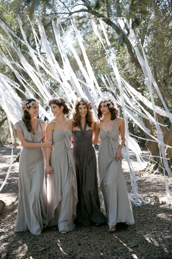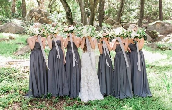 姊妹團穿深色調的裙也是另一種風格,可能大家會覺得Big Day最好以鮮色為主,而有點抗拒灰色調,但其實淺灰色的姊妹裙會散發出一種高雅貴氣的感覺;深灰色則較為沉靜淡雅,加上深色調更是能突顯婚禮中的主角,還會令婚禮整個格調提高!