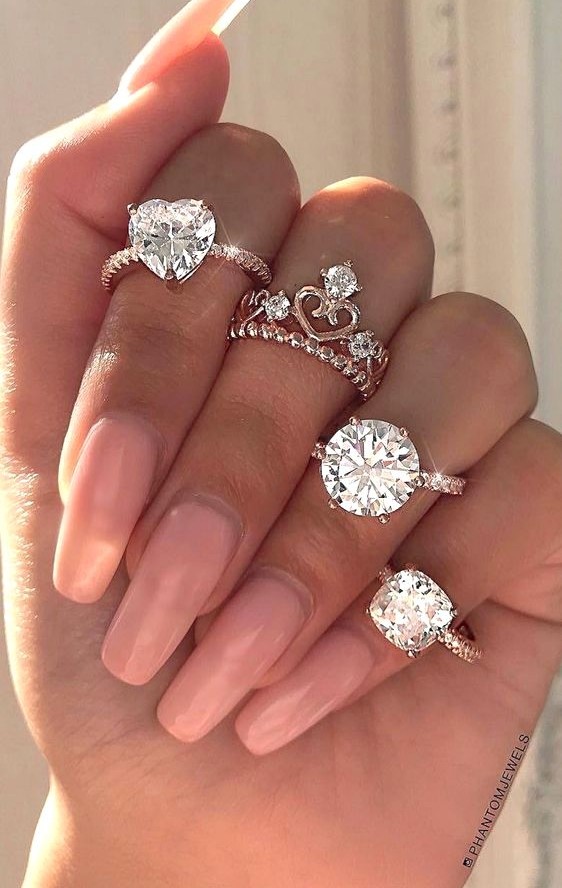 最常見的求婚或結婚戒指一定是鑽石,「鑽石」源自希臘文「adamas」,有著堅不可摧的意思,同時跟拉丁文「adamare」相近,表示熾烈的愛,因此大家都會賦予鑽石為永恆愛情的意義,亦是堅硬且璀璨的象徵,而且在燈光下折射更顯閃閃生輝!