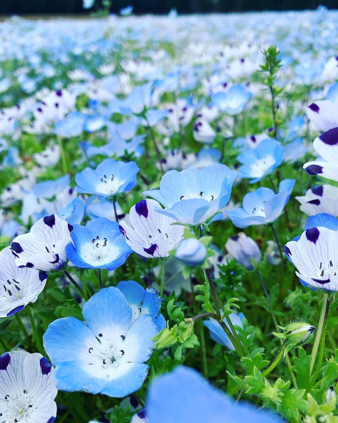 藍色的粉蝶花花海位於日本東部的茨城縣國營常陸海濱公園(国営ひたち海浜公園),滿山遍野的藍色粉蝶與一望無際的天空形成一副的藍圖,幾乎是分不清天與地的界限,超浪漫的!因此被評為「全球最浪漫的花海之一」!