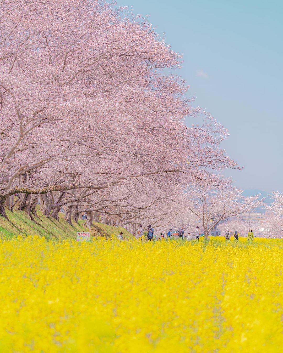 奈良縣最大的油菜花田也是很好的選擇~日本奈良縣藤原宮雖然已經不復存在,但是遺址上的空地在每逢春秋時就會變成燦爛奪目、色彩繽紛的花海,當一整片暖黃色的油菜花田出現在你面前時,感覺就相當療愈!