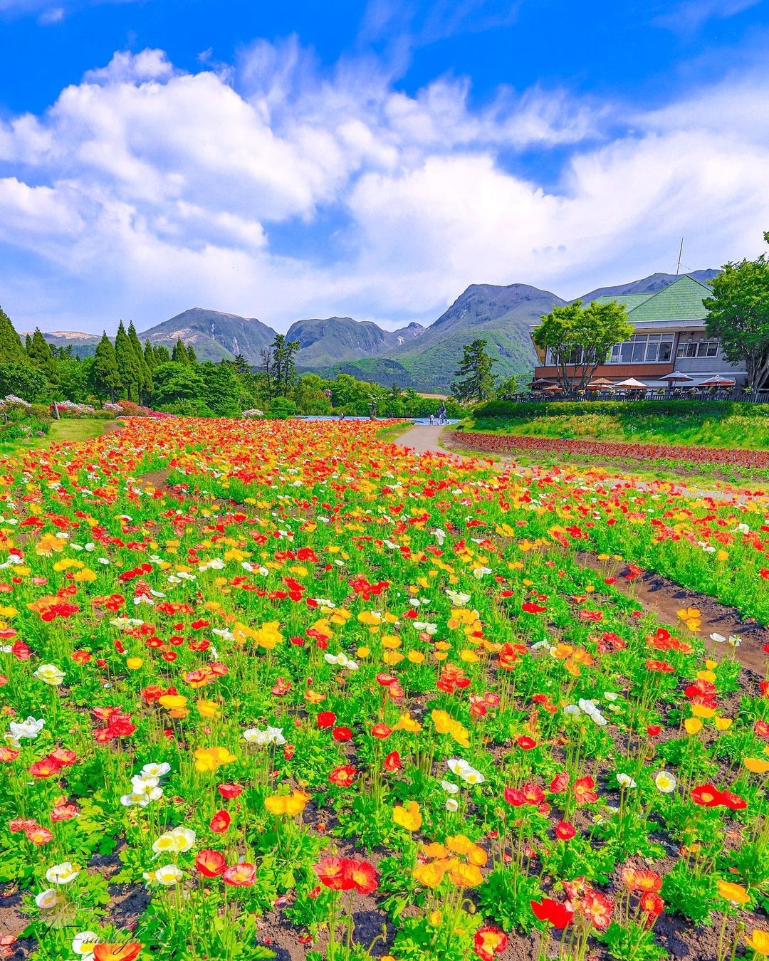 久住花公園從3月到11月都開滿了花朵。春天,您可以在公園內欣賞鬱金香、嬰粟花以及芝櫻;夏天,則有薰衣草、牡丹以及太陽花;秋天,有波斯菊、金盞花、鼠尾草;冬天,則有三色堇、紫羅蘭等,是一年四季都可以去的花田噢~