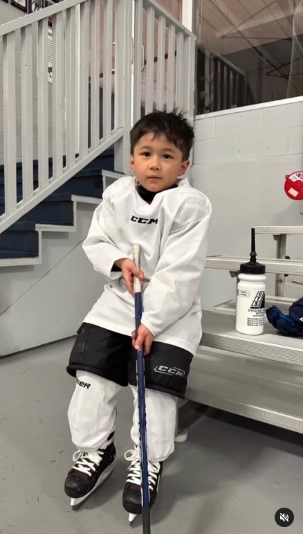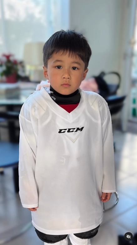 近日,鍾嘉欣又在IG上PO出照片,不過今次不是她本人的照片,而是她的二仔Jared的近照和溜冰的影片。從畫面中可見,現年5歲的Jared穿上白色溜冰服,手持球棍在溜冰場上溜冰。