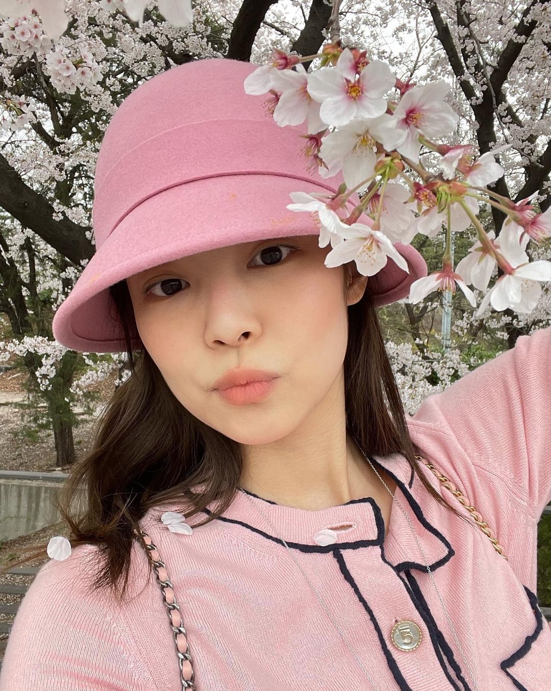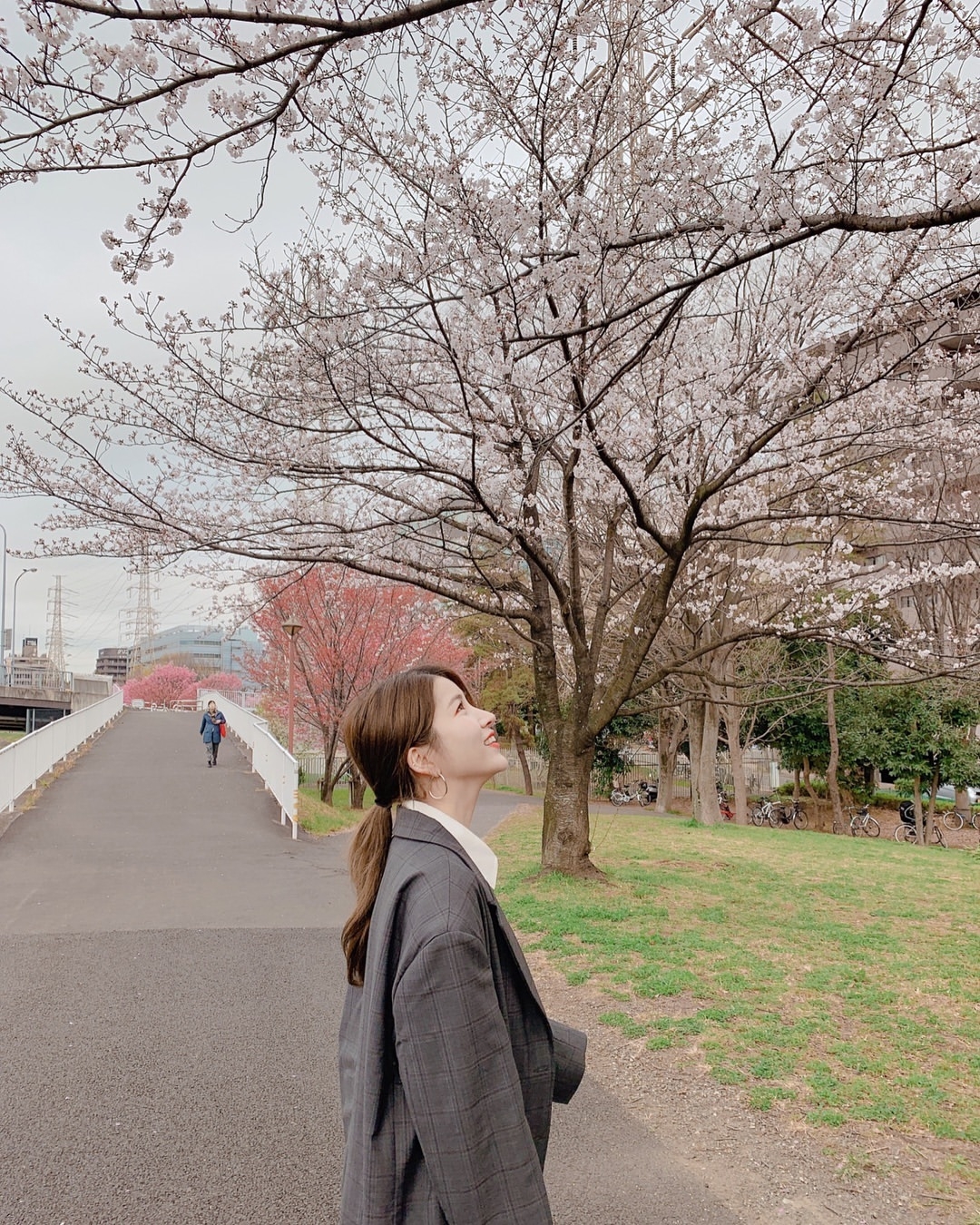 有些女生會選擇比較有個性的灰色或黑色來賞櫻打卡,不過相對會少些夢幻的感覺,反而鮮明的對比更顯型格~Lisa正正就是很好的示範!穿著型格的黑色西裝外套去賞櫻及打卡~