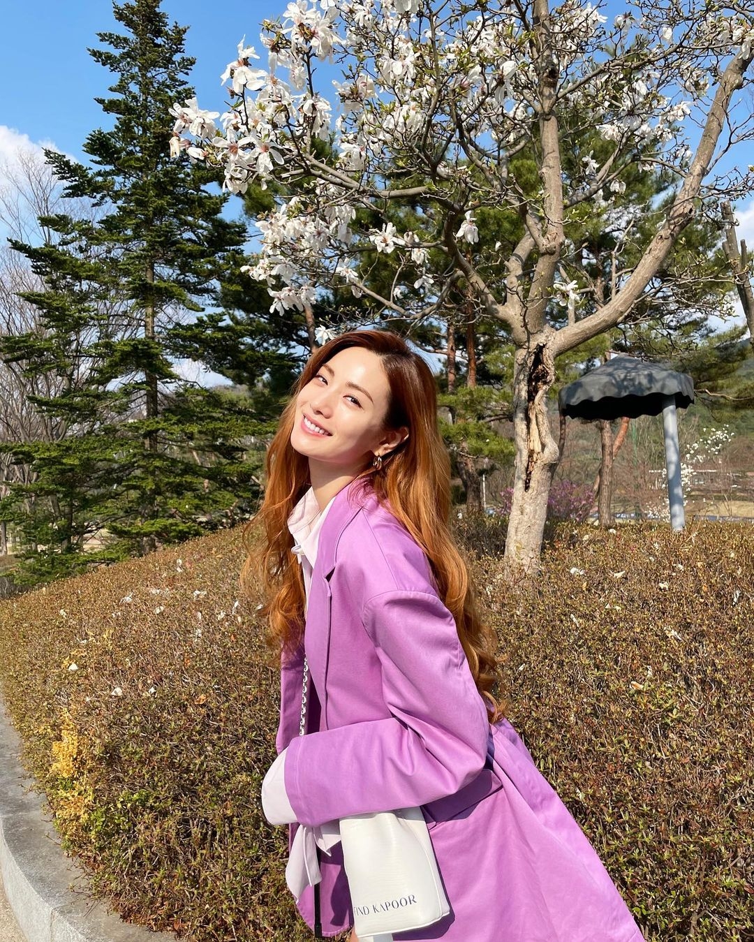有粉色又怎能沒有同樣浪漫感十足的紫色,柔和又舒服的紫色搭在白色或粉色的櫻花都氣質爆棚,更添幾分夢幻氛圍~而且減齡效果很好,大家也可以試試以紫色穿搭去賞櫻!