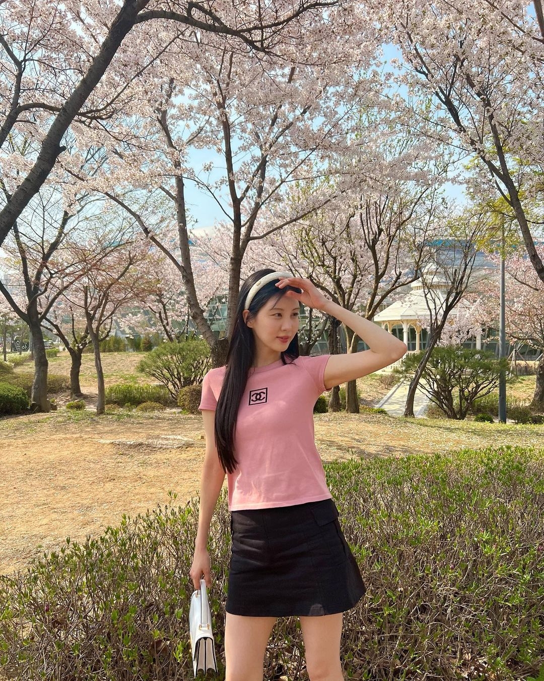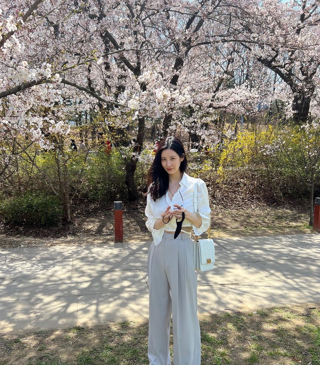 細且密的櫻花看上去會比較複雜,所以建議以純色穿搭為主!最簡單的色調一定是白色,當櫻花盛開至鮮艷的粉紅色時,穿著白色的衣服會十分適合~讓整體畫面看上去更簡潔、乾淨,自然令你也散發出清新的的感覺,視覺上更加平衡!