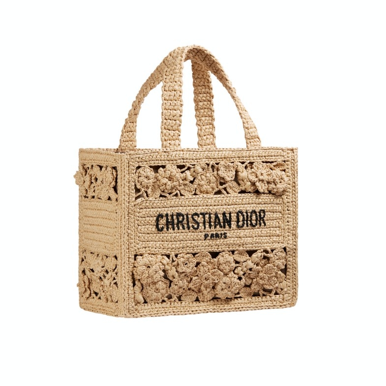 Dior Book Tote現已成為Dior的美學典範,此款式以天然的拉菲草重新演繹,並採用鏤空設計,呈現出浪漫的花卉主題圖案。手袋內部採用以可拆卸的同色系帆布,正面綴有Christian Dior Paris的刺繡標誌,並彰顯品牌標誌性的精湛工藝,滿載夏日氣息!