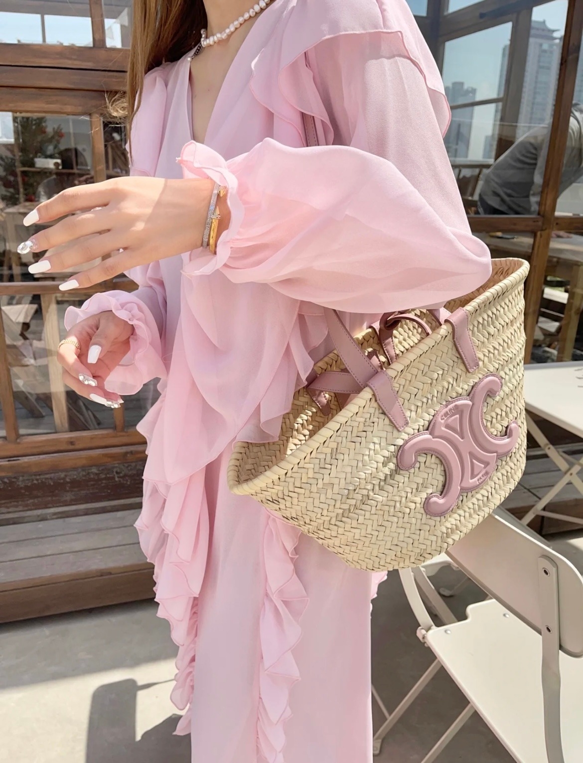 Celine也是經常推出草編包的品牌之一,而這款棕櫚葉及小牛皮的編織袋,採用少女們熱愛的復古粉紅色調,比起經典的棕色焦糖款,粉色的凱旋門草編包顯得更加夢幻、獨一無二!揹上它搭配白色連衣裙就充滿夏日氣息!
