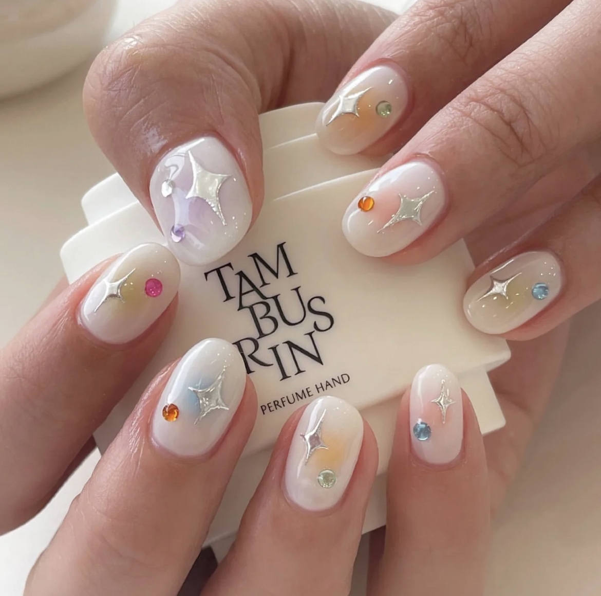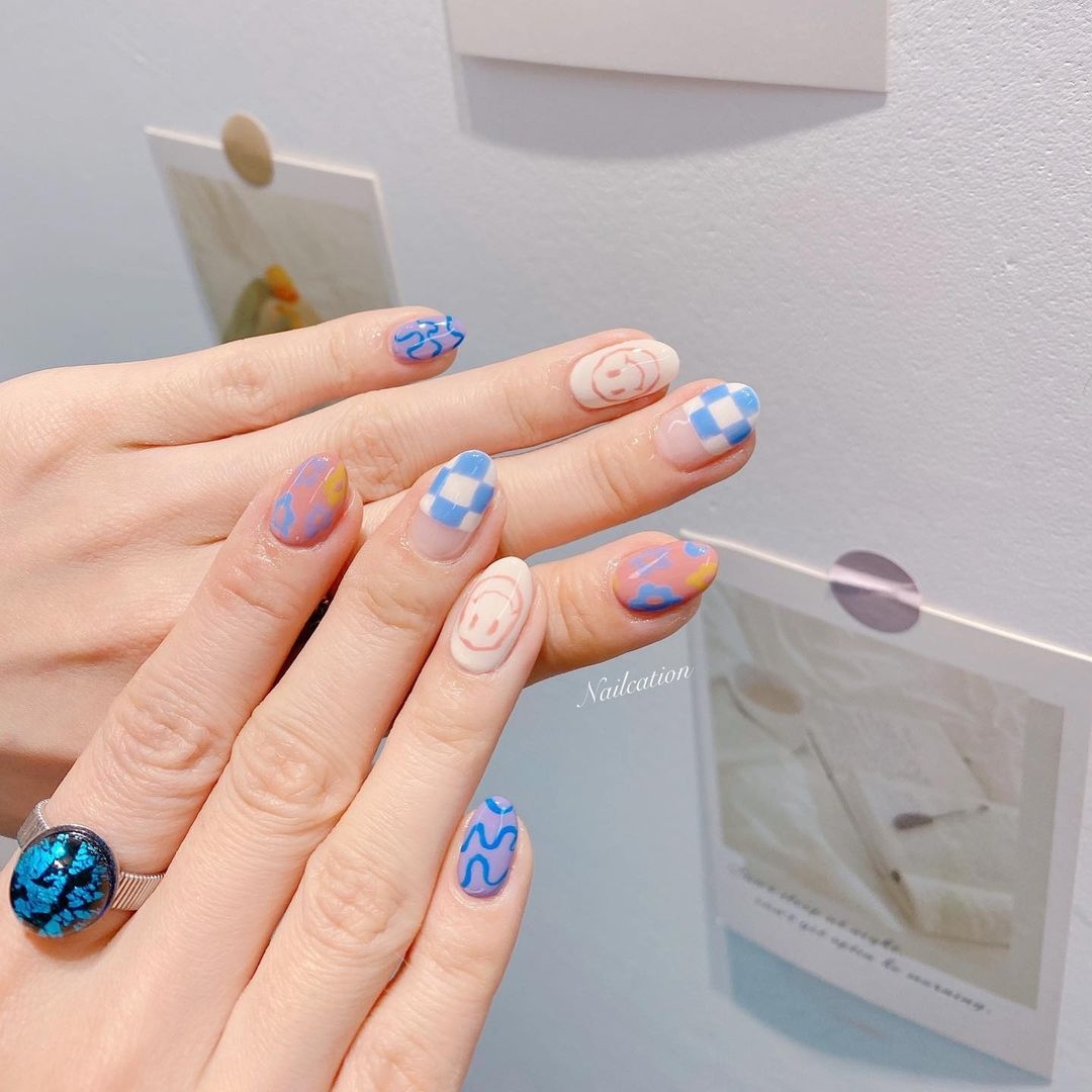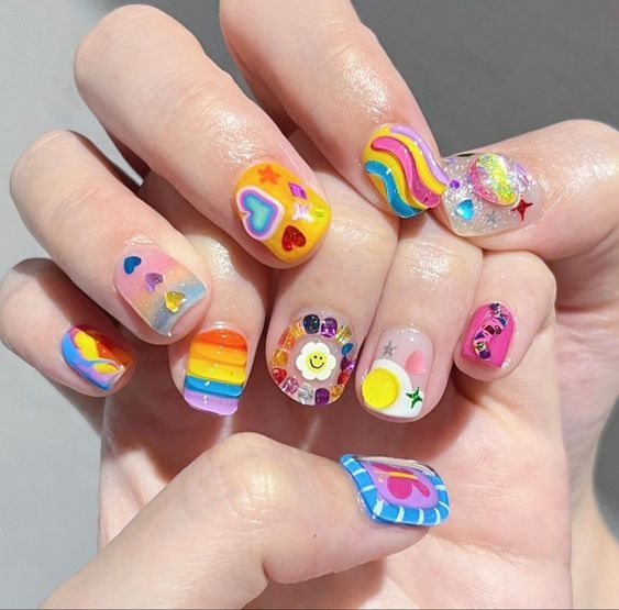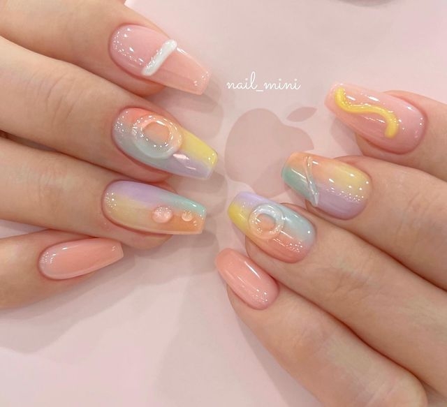 又可被稱為「泫雅風」,除了底色有果凍般的透明感外,還可以配上立體又搶眼的小裝飾,而且配色都比較獨特又色彩繽紛,絕對是夏天必試的美甲款,活潑感十足!