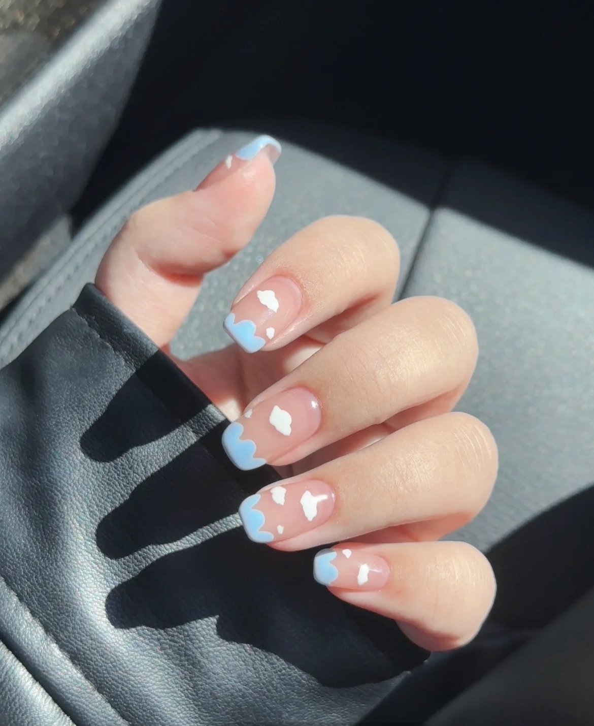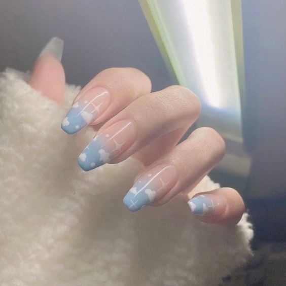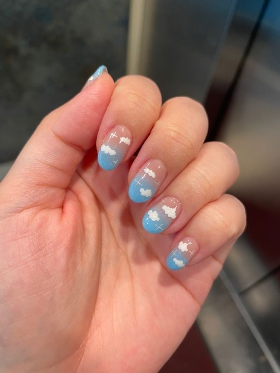 將簡約的法式變成雲朵邊設計,以天藍色的弧線加上白色小雲朵,就像把天空偷偷收在指尖內,配上清爽的配色,超可愛!或者嘗試漸變天藍底色,營造出天空的感覺,同樣好看!