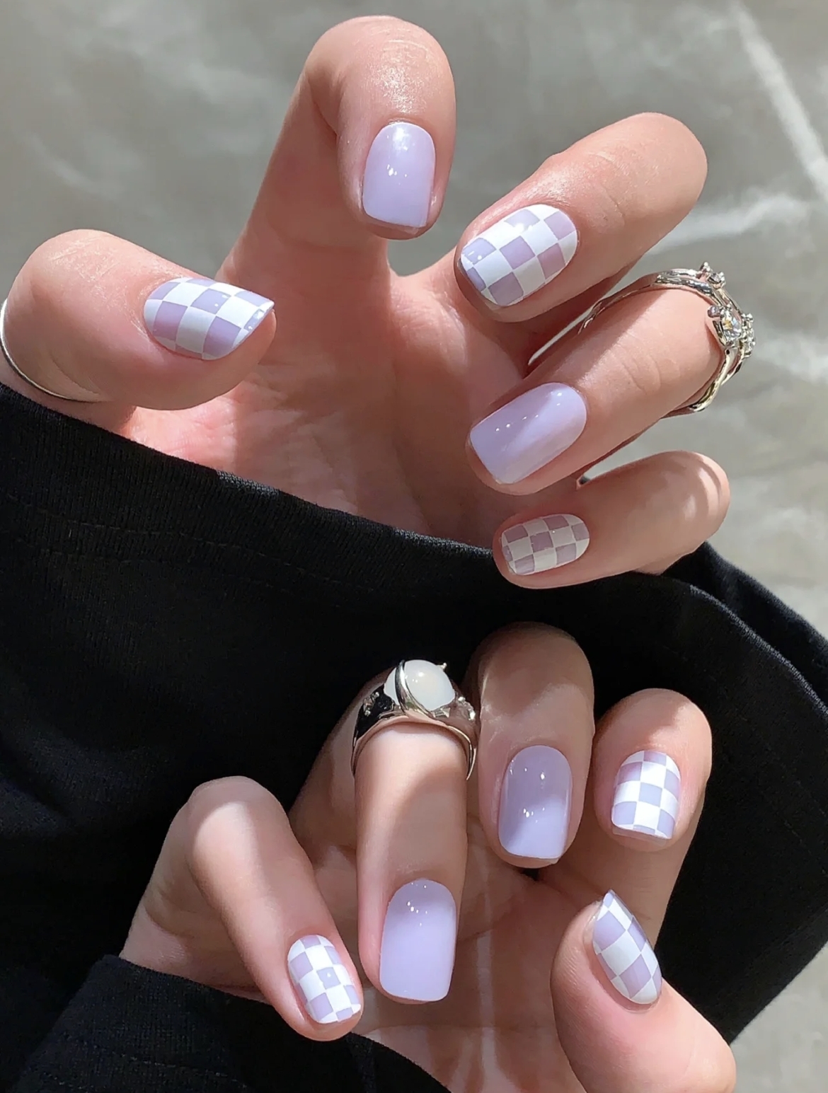 如果怕太浮誇的話也可以選擇透明底色的棋盤格或一半的棋盤格款,一樣好看又低調!