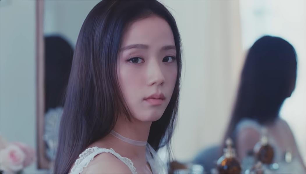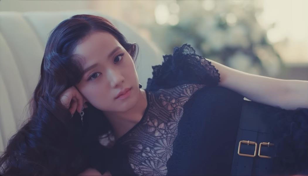 另外,MV結尾會看到身穿高雅黑色蕾絲晚裝裙的Jisoo側躺在床上,波浪捲髮髮型復古感滿滿~而妝容則是帶點清冷、魅惑的氛圍,簡單地以大地色調的眼影來打造出深邃的感覺,加上水潤且帶淡淡粉紅色的唇妝,將氣質更加提升一個層次,超美!