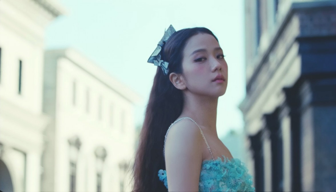 《Flower》MV的第一幕是Jisoo以清純的白色背心裙出場,配上充滿空靈感的眼神和妝容,超有氣質又不失慵懶感~以柔霧感的底妝,配上淡然且低調的眼妝和自然的裸色調唇妝,散發出淡淡的溫柔感。