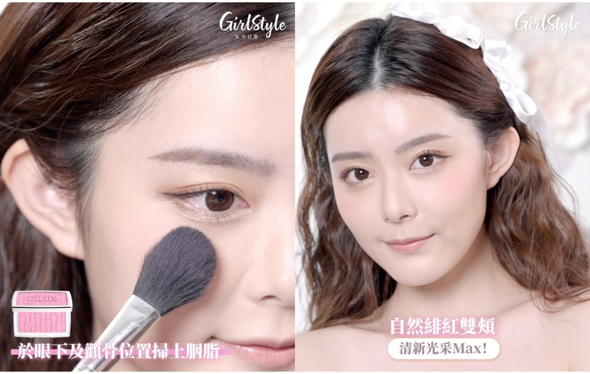 胭脂用上Dior專業後台玫瑰胭脂 #001 Pink,於眼下及顴骨位置掃上淡淡的淺粉色胭脂,營造輕透的裸妝感,讓胭脂好像從肌膚底層透出來一樣,打造出自然緋紅雙頰~