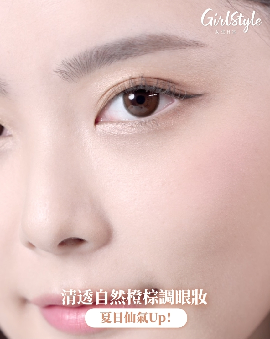 最後在眉骨下及內眼角掃上米白色來打亮眼妝、提升立體感,這樣清透自然橙棕調的眼妝就完成喇!夏日仙氣UP UP!
