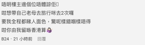 港女呻二人旅行男友堅持帶埋阿媽去!反被男友鬧唔識體諒,網民熱議:孝順定媽寶?