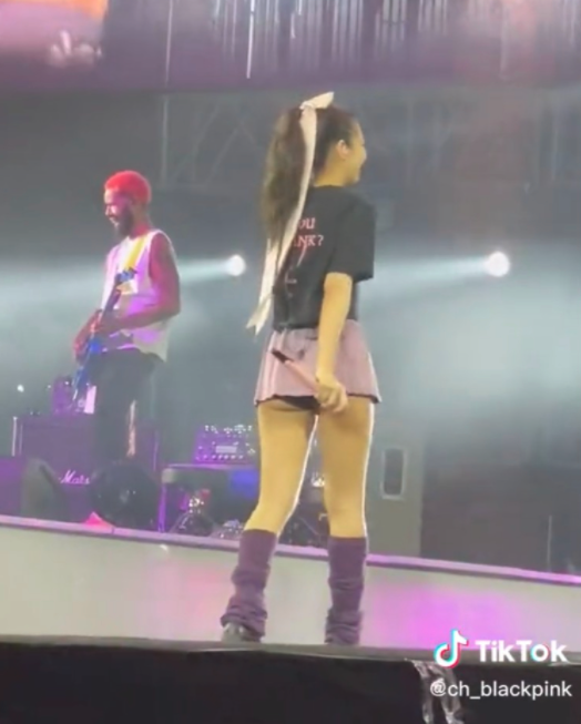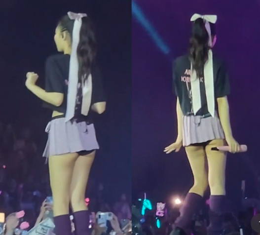 早前在巴黎舉行的BLACKPINK演唱會,「人間香奈兒」Jennie在舞台中途竟然脫下身上的銀色外套,只剩下一件黑色Bra及超短裙熱舞,甚至不介意露出打底褲。