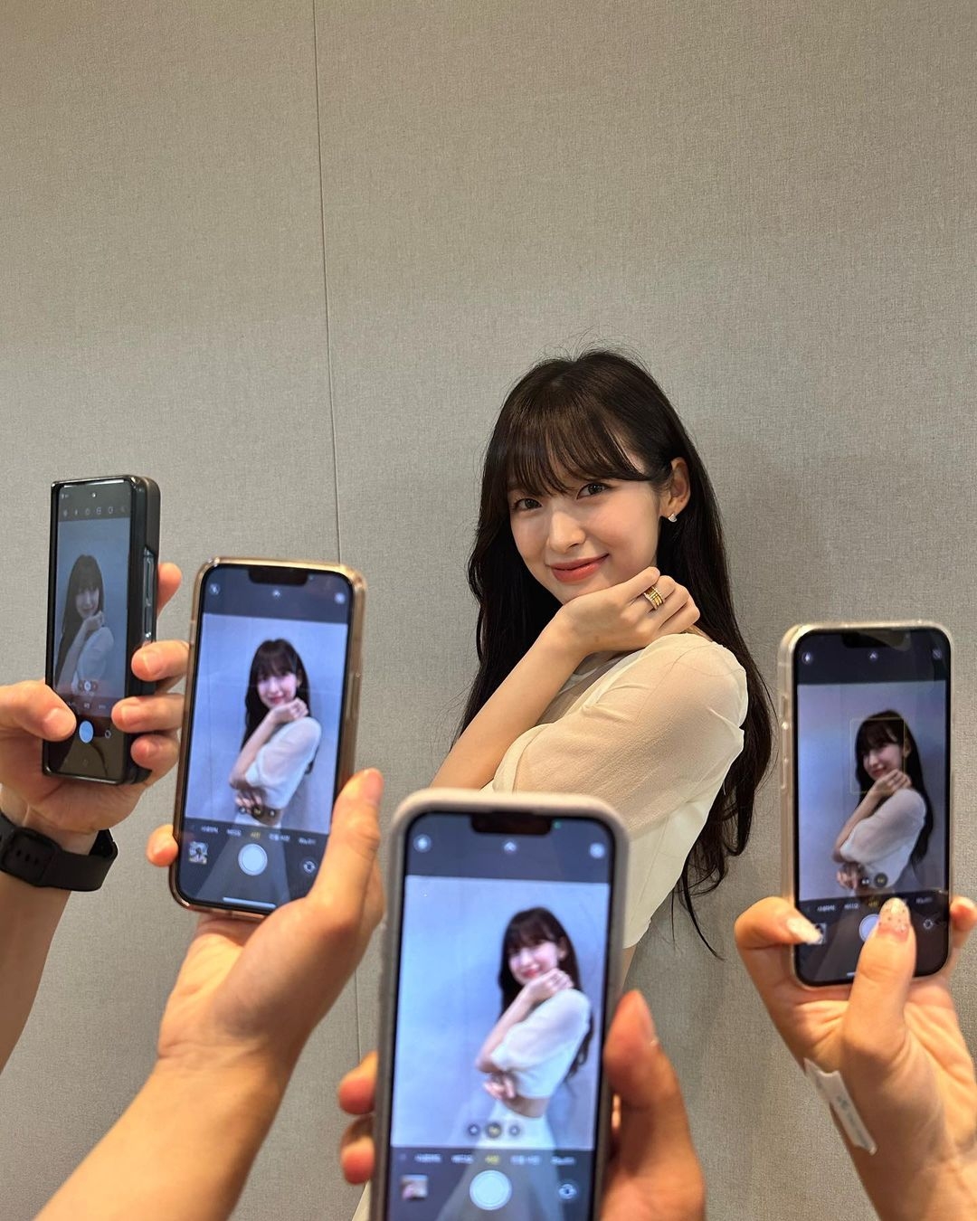 只需要站在中間自然地擺一個Pose,讓朋友打開相機功能再影住自己就可以~同時被4-5部的手機包圍著,這樣不但能呈現出不同角度的自己,畫面更是一瞬間變得豐富起來,十分有趣!連韓韶禧、Jessica、Minnie都試過!