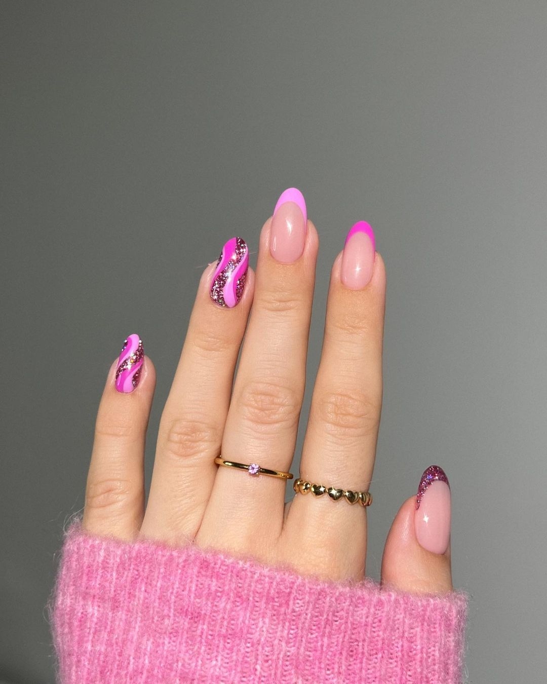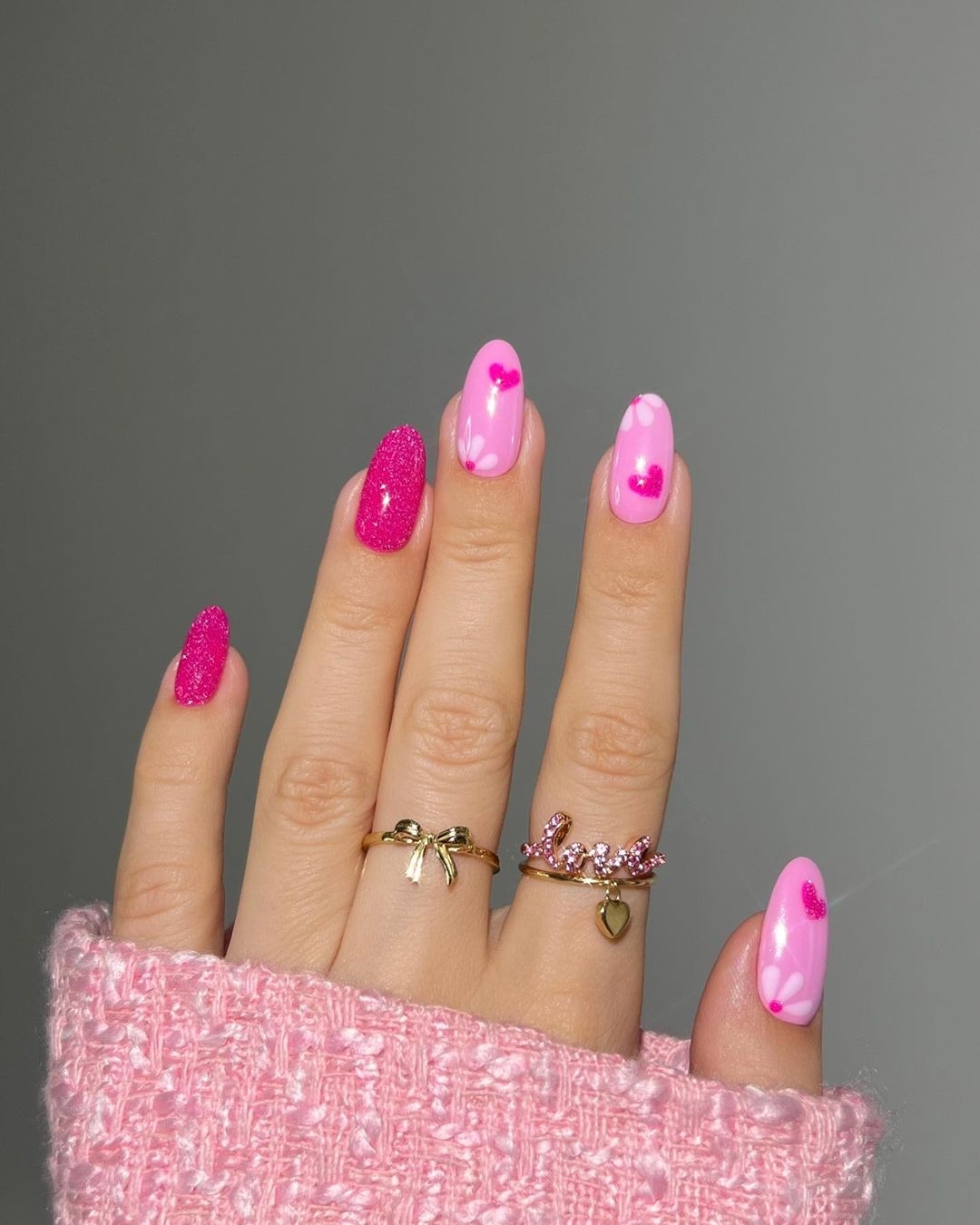 在Y2K潮流席捲全球的同時,以往讓人覺得難易親近的芭比粉再度重回人們的視線,也成為了Y2K少女最愛的造型元素之一,就連NewJeans也愛!如果覺得芭比粉很難駕馭,可以從美甲先開始,像是粉色與桃粉色的搭配,再指甲上畫上小愛心或小花,溫柔中帶點酷辣感。如果想要低調一點可以選擇法式線條搭配,會有令人意外的效果哦!