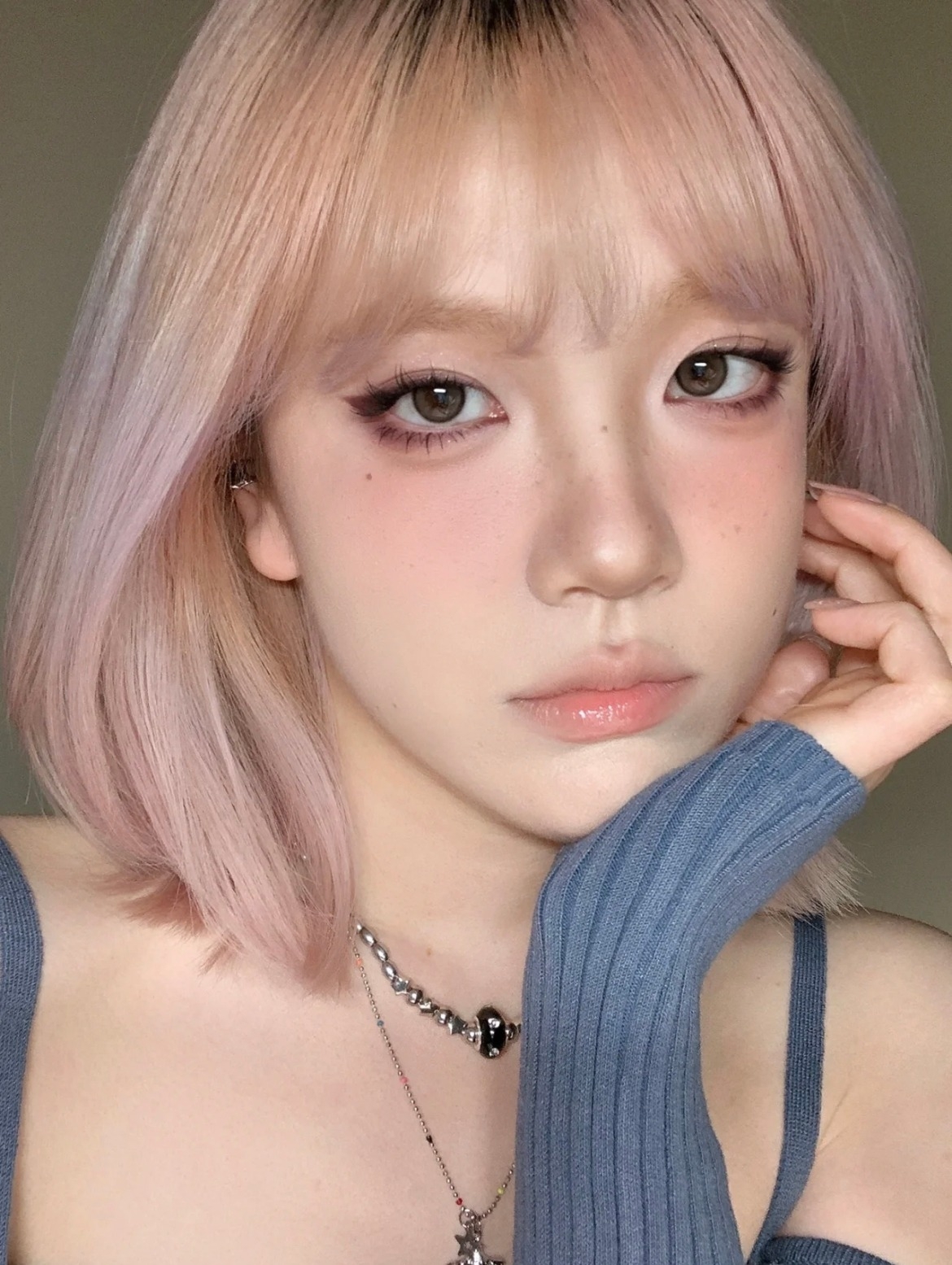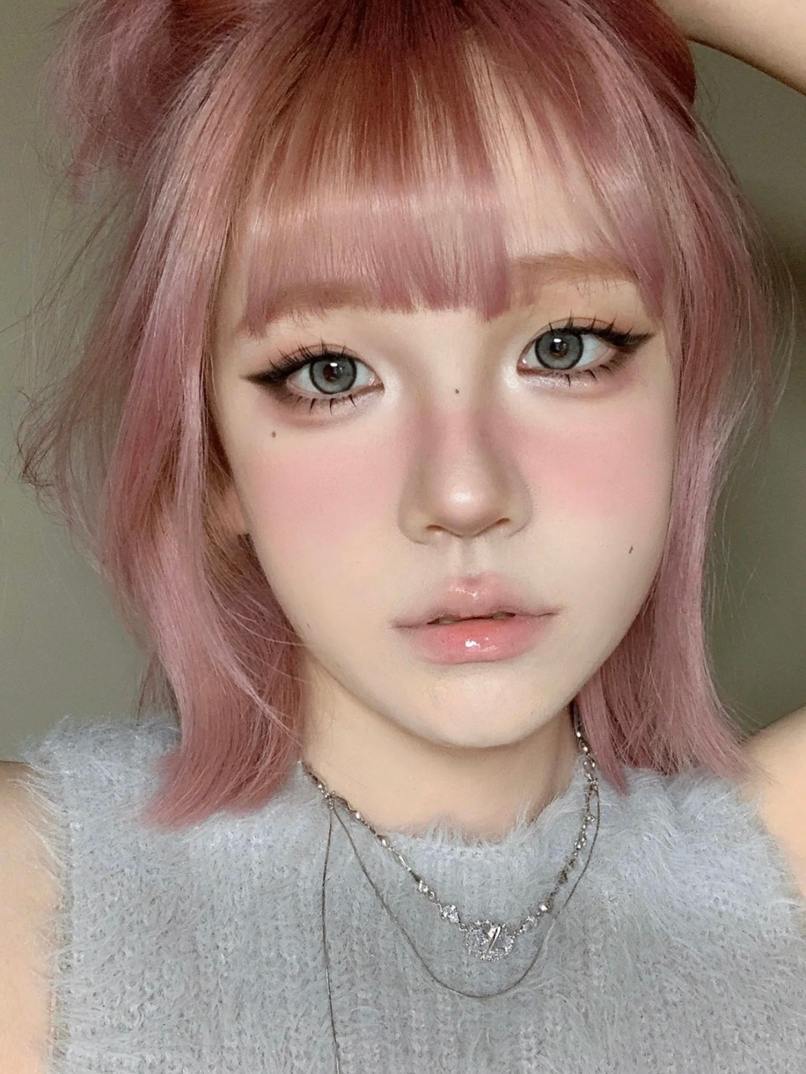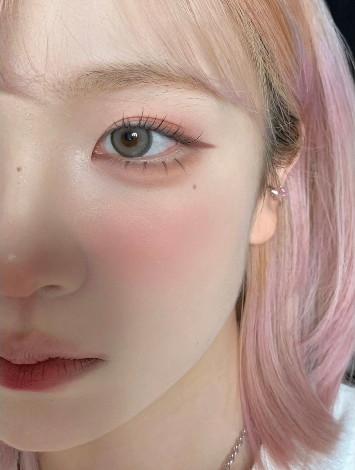 另外,也可以在鼻尖也塗抹一點淡粉色的胭脂,會更有氛圍感,而且搭配粉撲使用淡粉色的胭脂定妝,就猶如自帶一層粉紅濾鏡,充滿水蜜桃感超可愛!