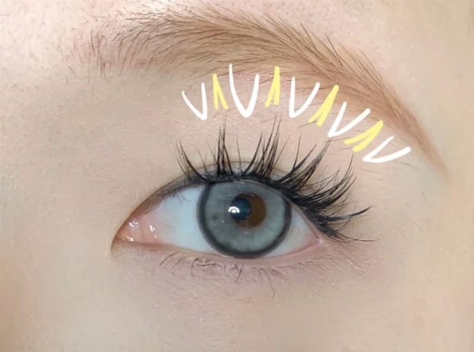 這種眼妝重點在於「眼窩、睫毛、臥蠶」,眼影反而可以忽略,所以先直接貼上5根V型或4根小惡魔款假睫毛。