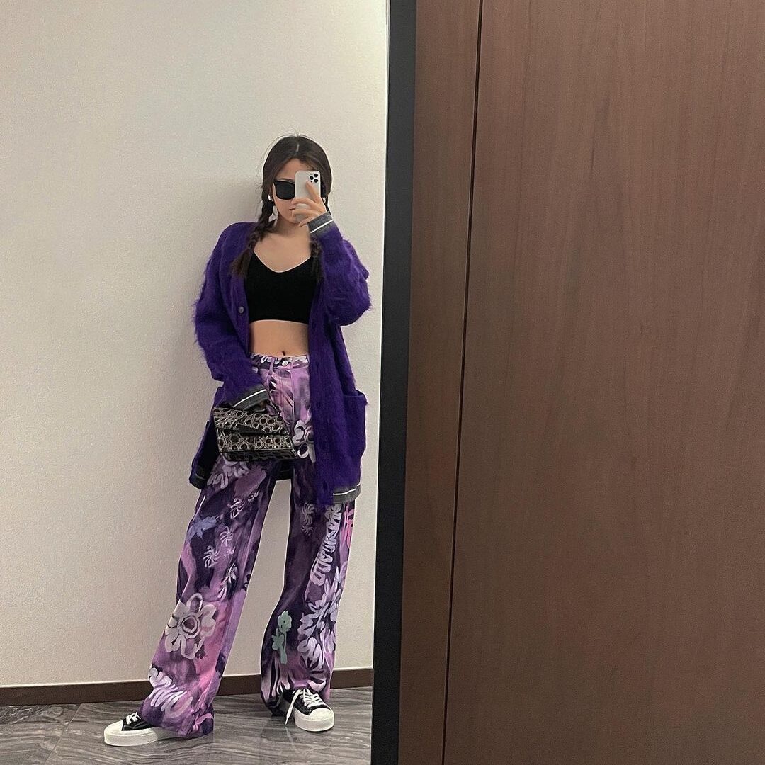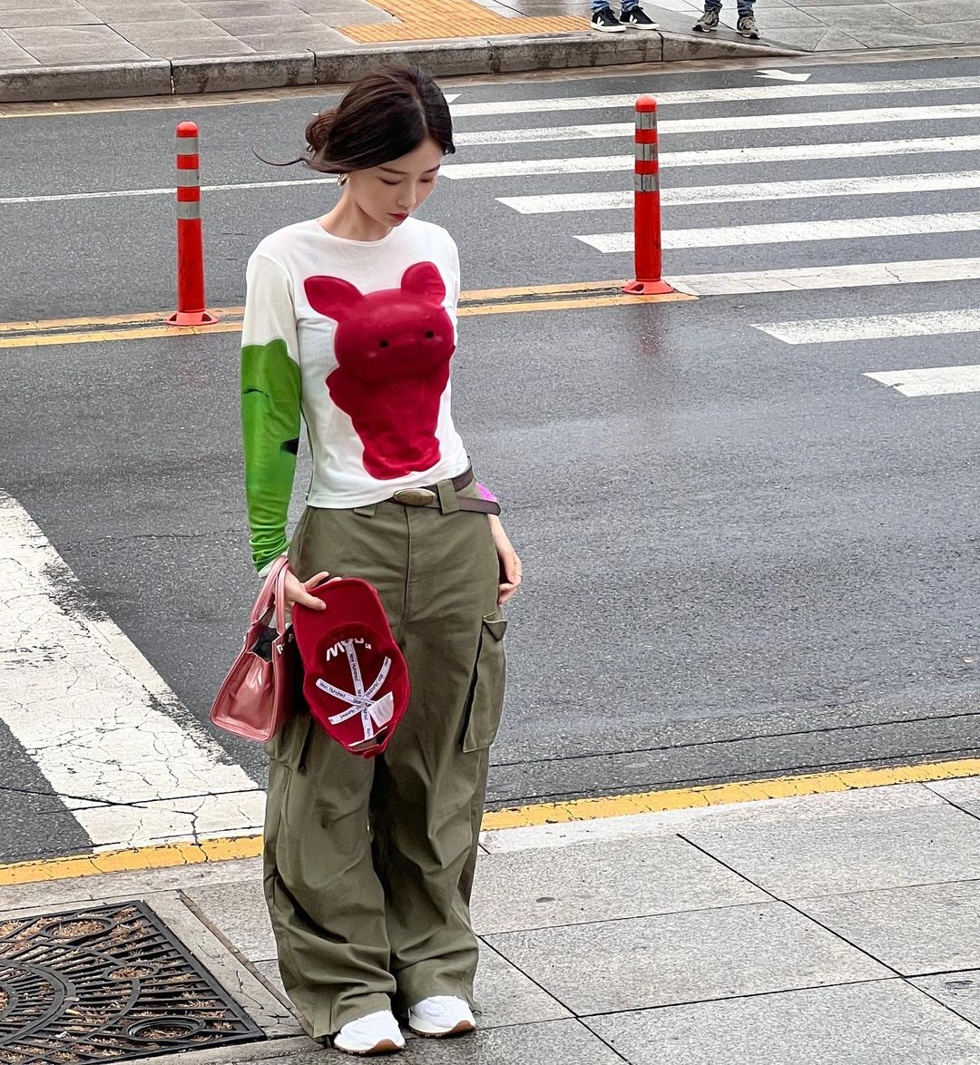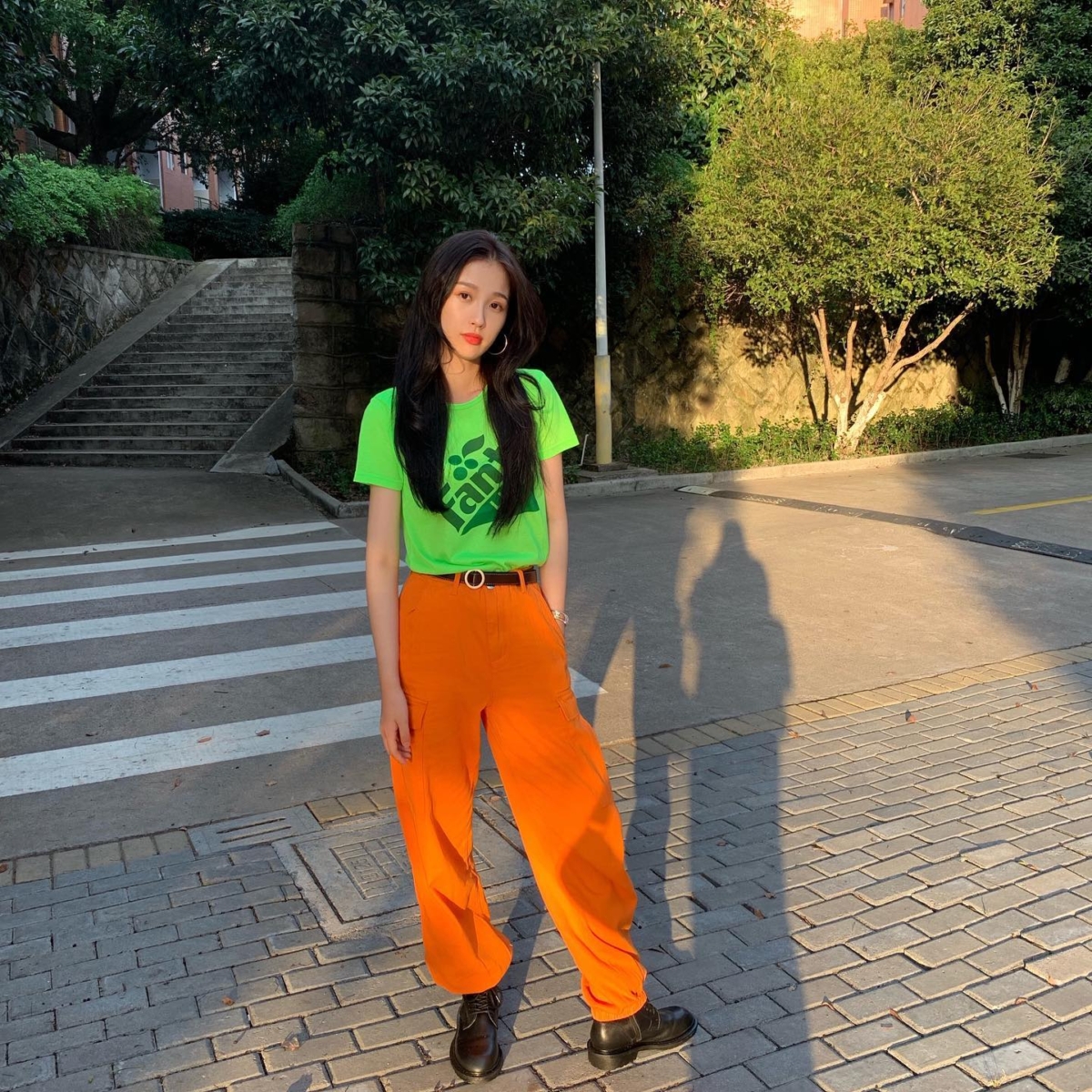虞書欣的穿搭其中一個看點就是元氣感滿滿的撞色穿搭,大膽搭配不同顏色的單品卻毫無違和感,像是以綠色Tee配橙色長褲、鮮黃色針織背心配牛仔褲等,看著就令人不禁陷入她的魅力,絕對是多巴胺撞色穿搭的參考範本之一!