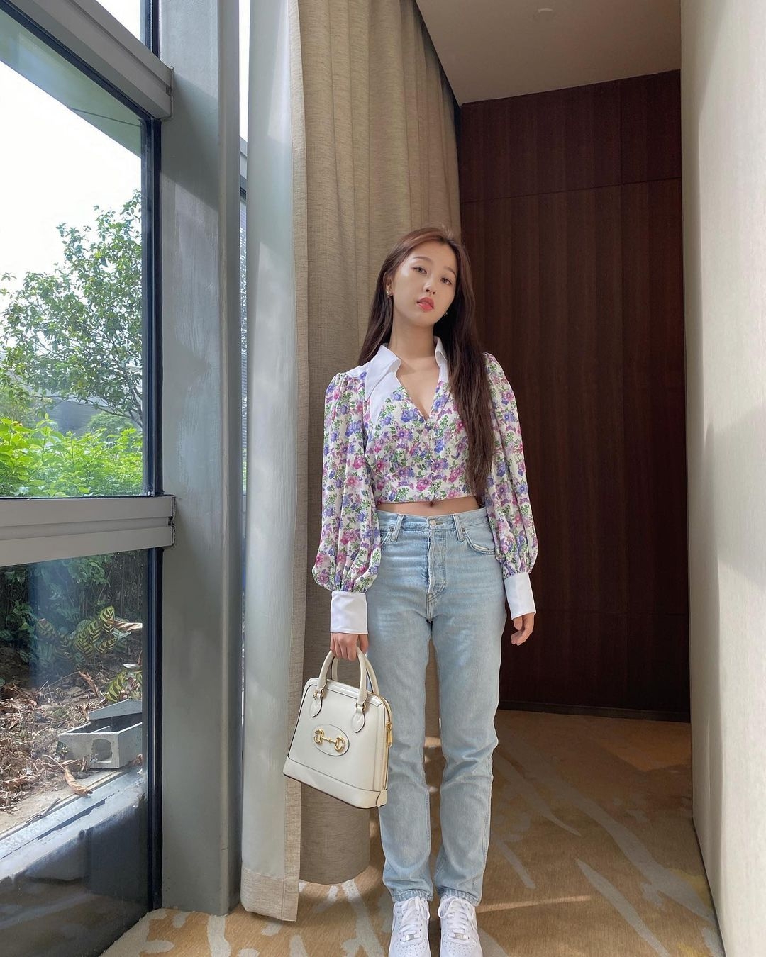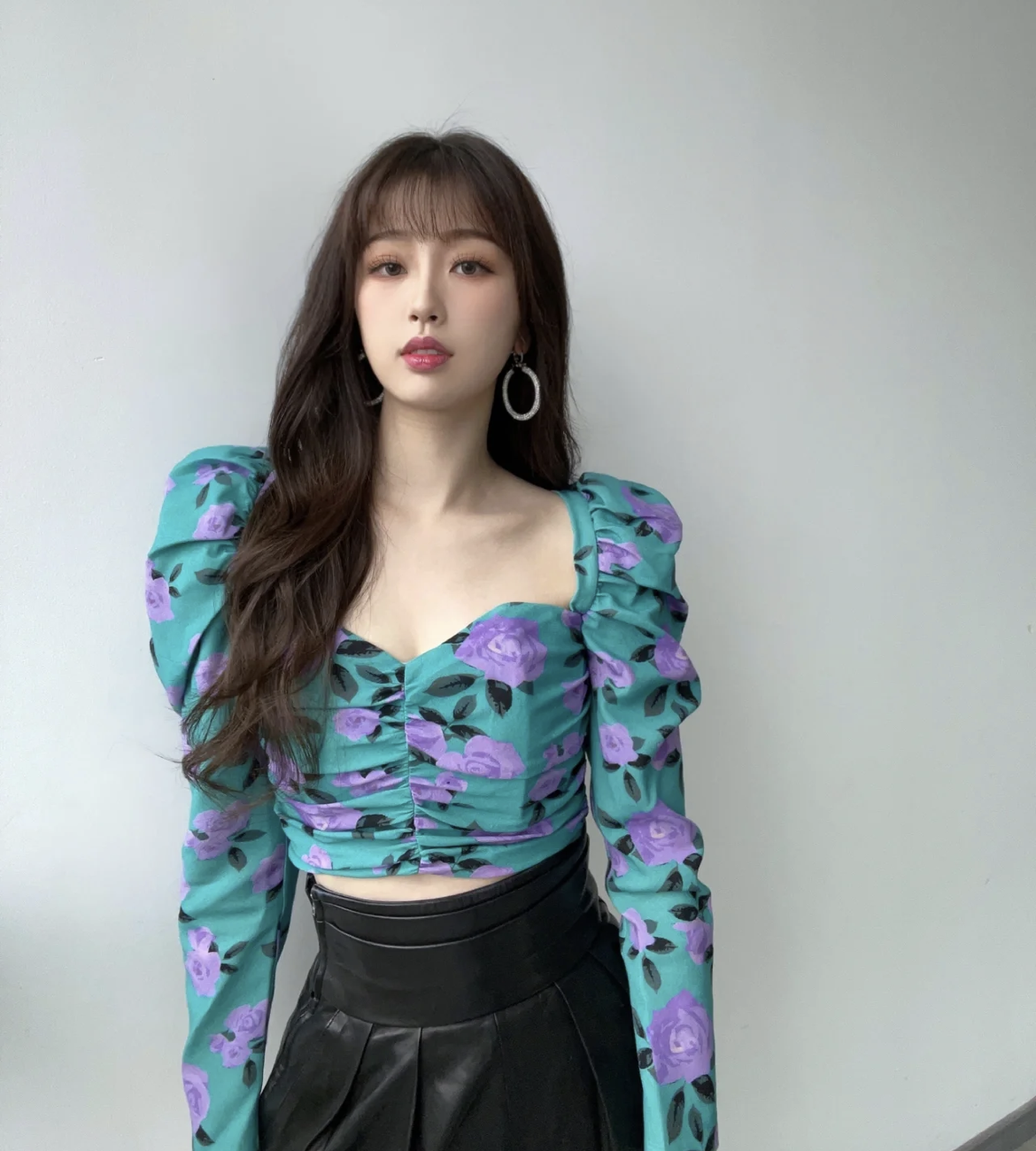 除了粉色穿搭,虞書欣也經常會以碎花穿單品示人,像是碎花連身裙、碎花泡泡袖Top等,並適當地露出肌膚,大方地展現肩頸位置,拉長頸部線條,看上去減齡又少女感UP!