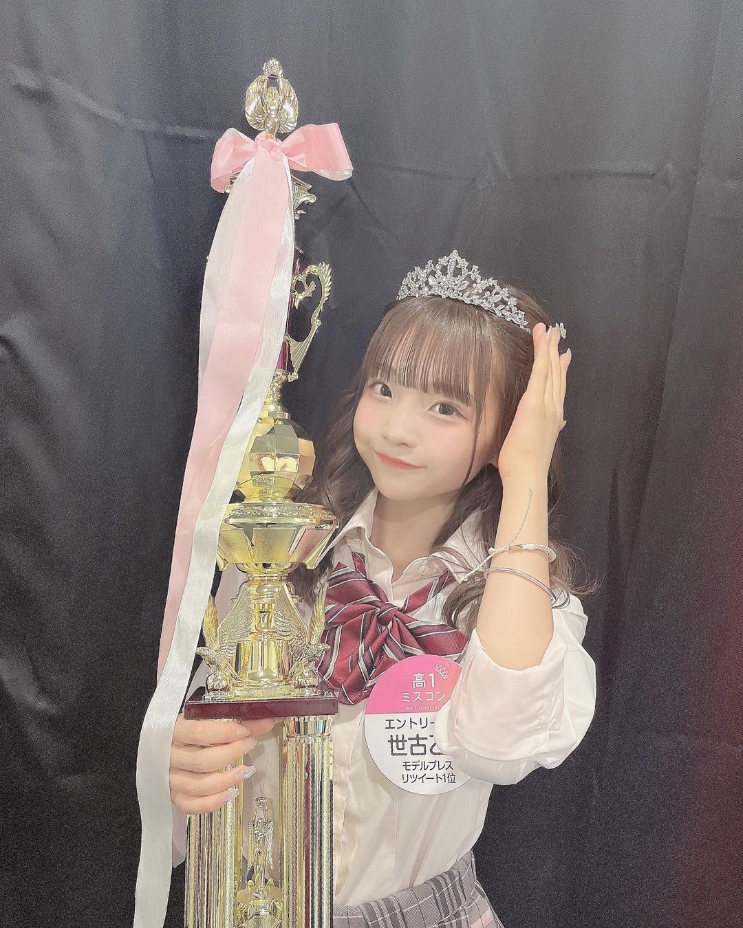 據日媒報導,2023年度「日本最可愛的高一生」票選結果出爐,來自千葉縣的世古乙羽憑藉甜美可愛的外貌,成功擊敗其他6位佳麗,脫穎而出。她在頒獎典禮上接過獎盃、披上鮮紅王冠披肩,發表獲獎感言:「感謝一直以來支持自己的粉絲,獲得『最可愛高一生』頭銜只是起步,未來將盡全力拿出最好的表現。」