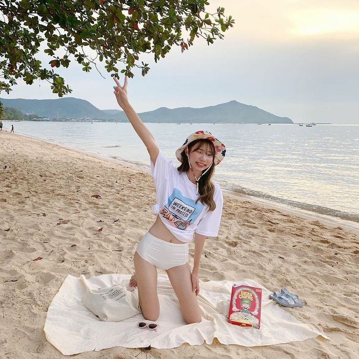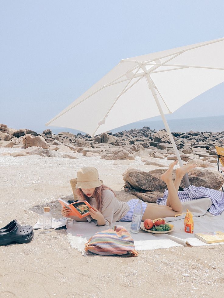 來到海灘當然少不了一張靚靚沙灘巾,不妨在靚靚沙灘巾上面打個卡吧~不論是坐著、側躺著還是跪著都夏日感十足!雙腳跪在沙灘巾上,一手叉腰,一手擺個可愛Pose,拉長比例之餘又有活力!如果是側身躺著,可以用一隻手撑著身體,腳微微彎曲,看上去舒服又保持優雅~