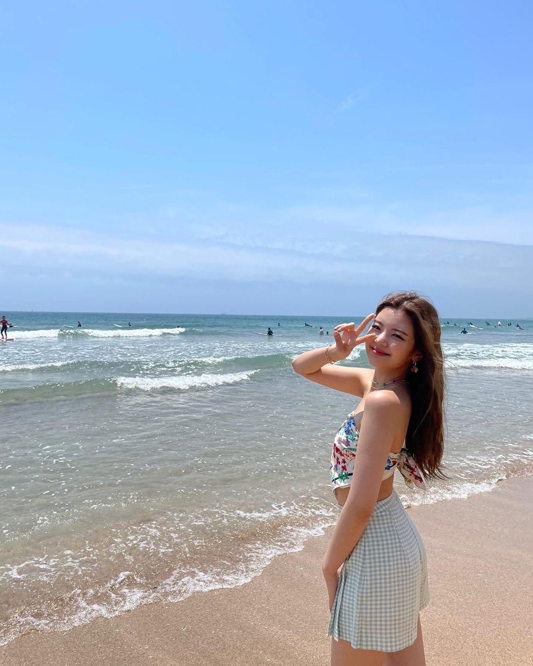 想更顯得有活力的話,不妨走到海邊,輕輕踩在海水來回地行走著,配合海浪拍打的小浪花,即刻充滿仙氣又有可愛感!