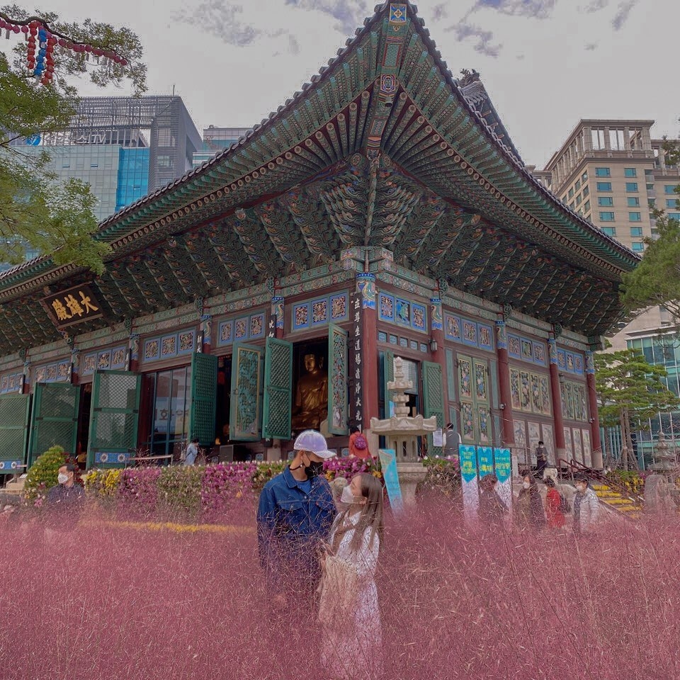 曹溪寺(조계사)位於安國站附近,是韓國佛教中心的寺廟,曹溪寺的名字取自慧能大師曾經駐足的曹溪山。原來如此神聖的地方也是欣賞粉黛亂子草景點之一,粉紅色的粉黛亂子草配上古色古香的的寺廟,也是別有一番風味~