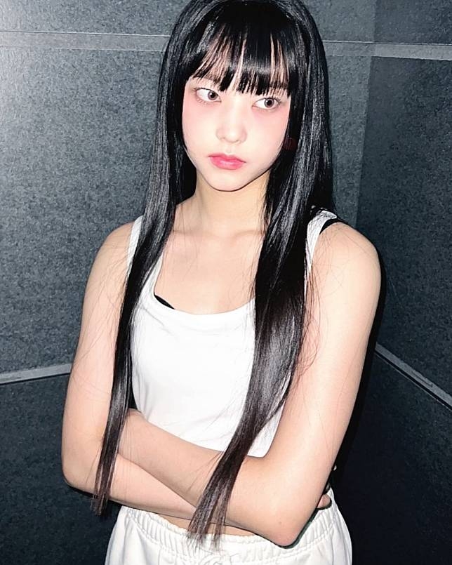 由於天生一副厭世樣,又具備「眼尾高於眼頭」和「嘴唇下厚上薄」的明顯特徵,再加上當時髮型又是黑色長直髮,因此Haerin曾被指與日本恐怖漫畫家伊藤潤二筆下的「富江」非常相似,更被封為「真人版富江」。
