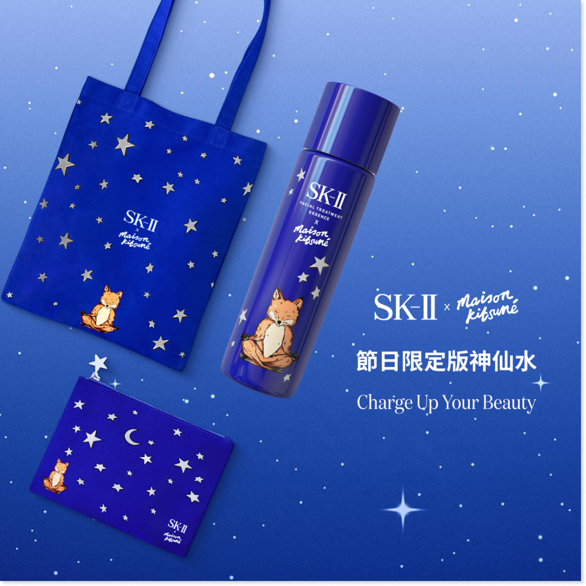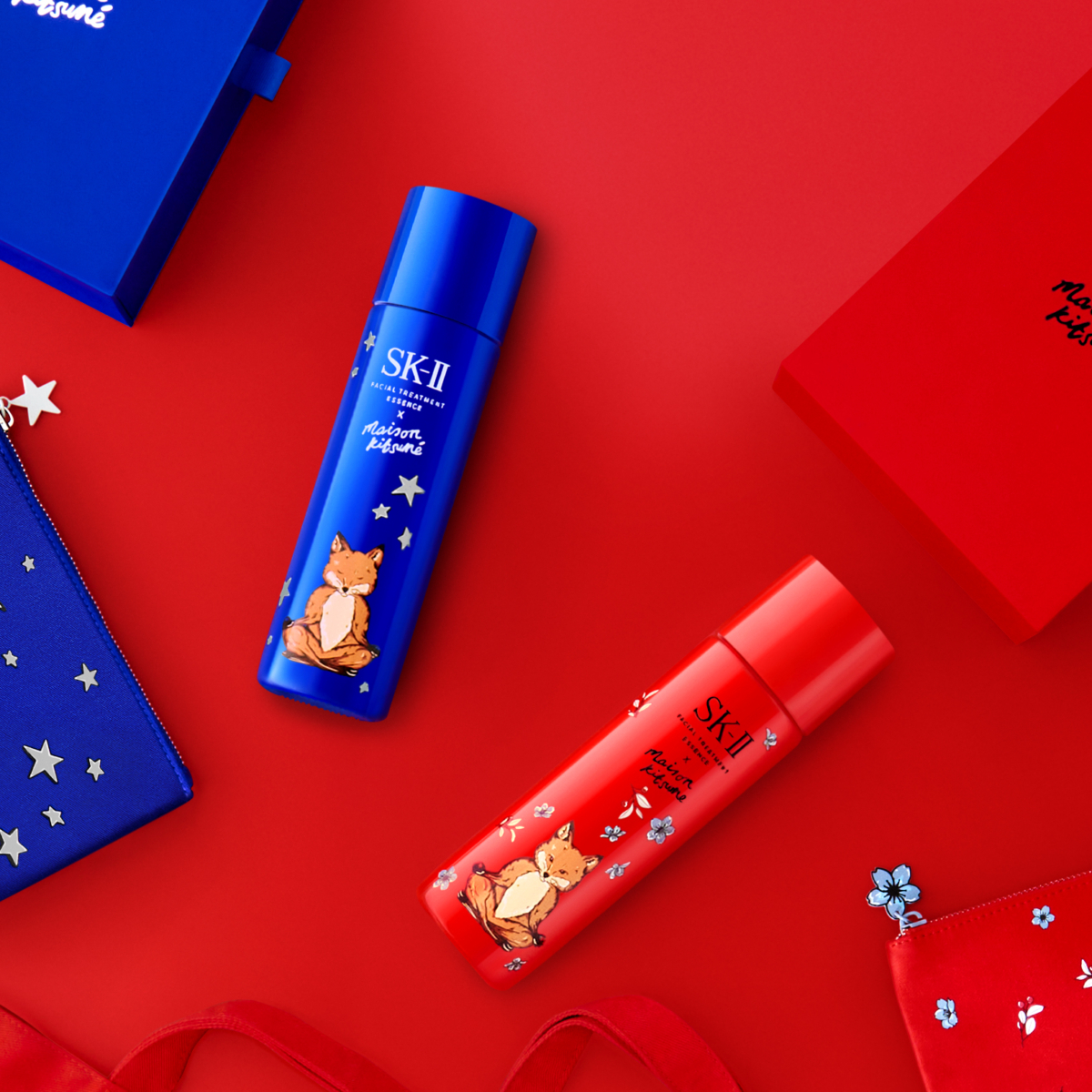 今年『瑜伽小狐狸』與SK-II攜手合作,為我們帶來了節日限定版的SK-II PITERA™ 神仙水。是次神仙水瓶身的設計融合了Maison Kitsuné的經典瑜伽小狐狸元素,炫目的紅/藍瓶身引領我們穿越日本和法國,為肌膚注入源源不絕的活力,不分日夜。這不僅是一個產品,更是一種態度,讓我們敢於展現真實的自己,自信地散發迷人的風采,擁有樂觀堅定的心態。