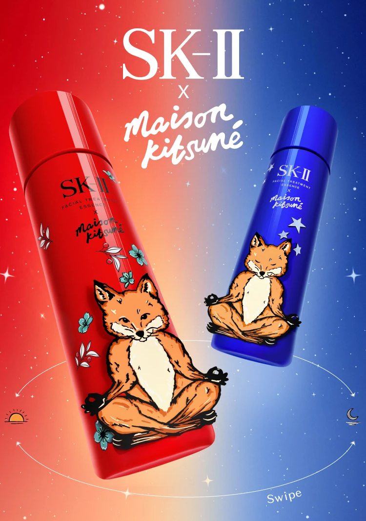Maison Kitsuné不僅是一個時尚品牌,更是一個融合藝術、音樂、文化和生活美學的綜合生活方式品牌。他們的理念是「Art de Vivre」,即「生活的藝術」,這一理念賦予他們品牌獨特的風格和多元性。這次與SK-II的聯名合作正是把兩個品牌設計精髓的完美交融,為肌膚注入了節日的魔力!而SK-II X Maison Kitsuné的節日限定版神仙水將於2023年11月13日在各門市首次發售,聽說SOGO崇光感謝祭精選優惠套裝低至65折!亦有一連串節日相關的禮遇活動~