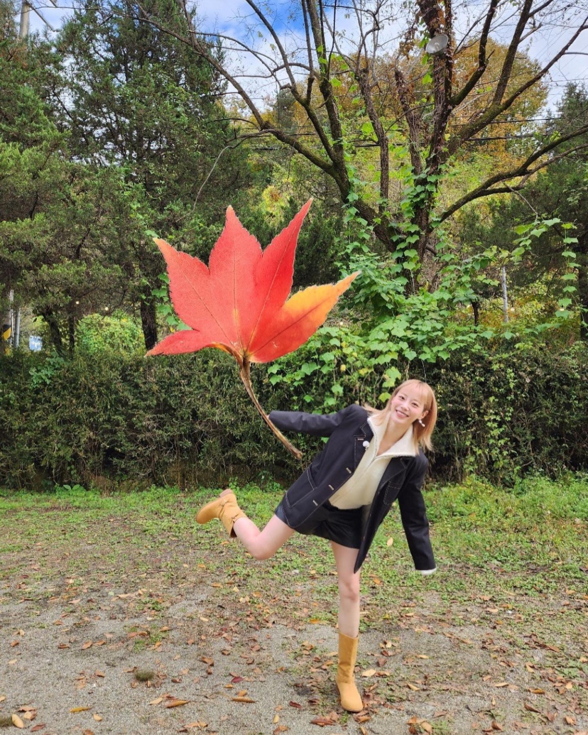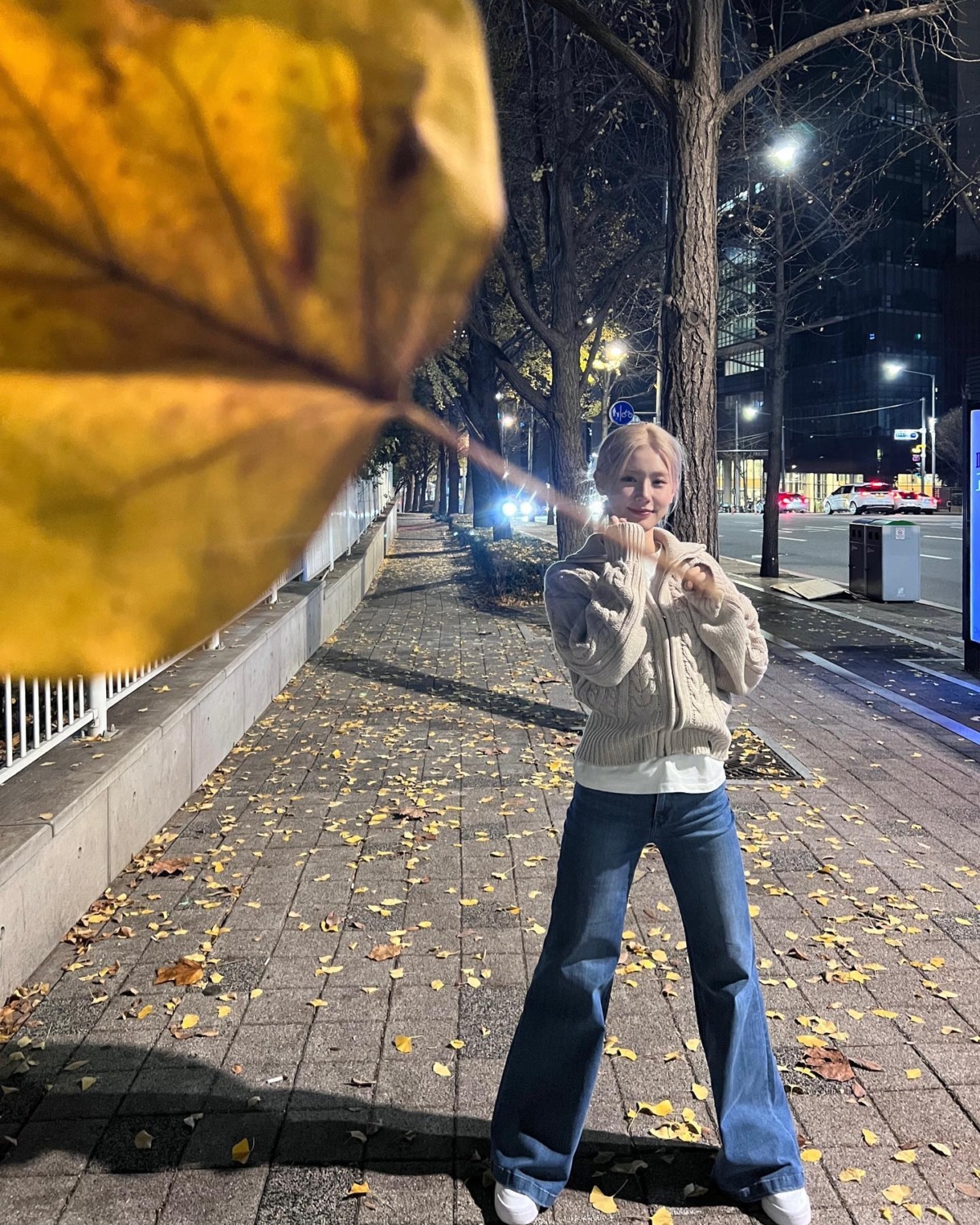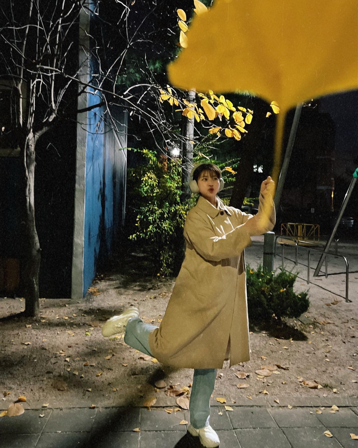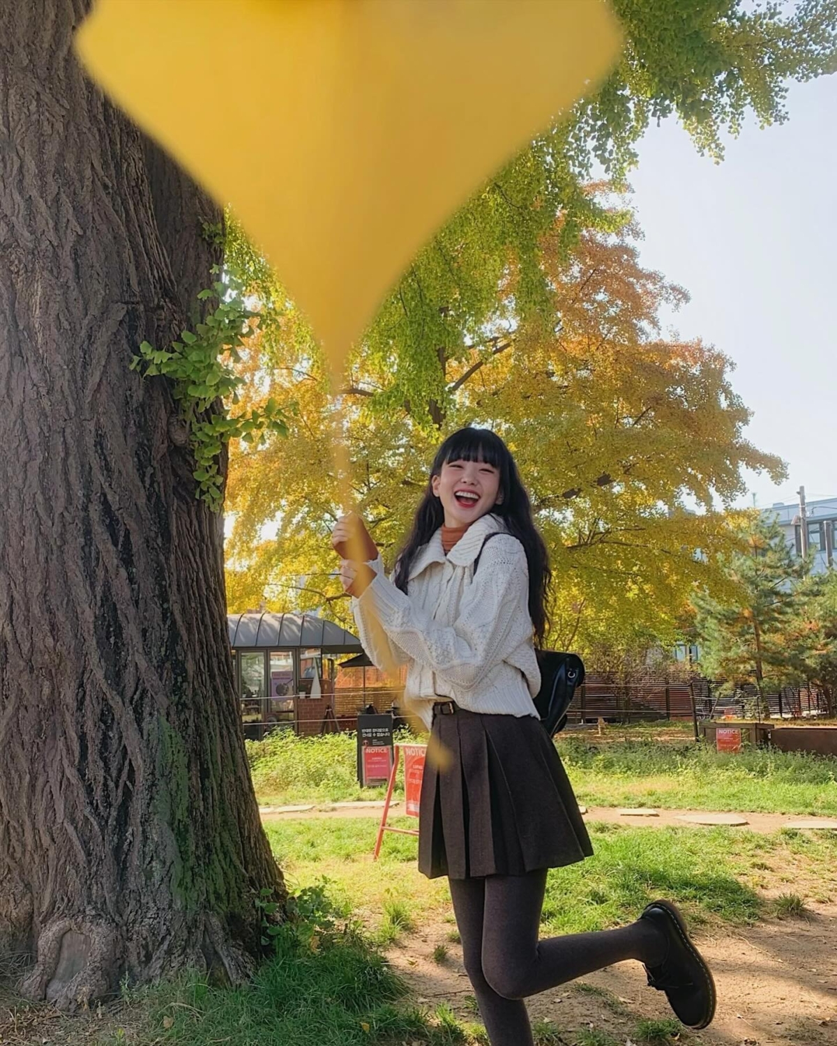 就連(G)I-DLE的Miyeon和齡智都有嘗試過這個「巨型楓葉」的打卡,效果超可愛!