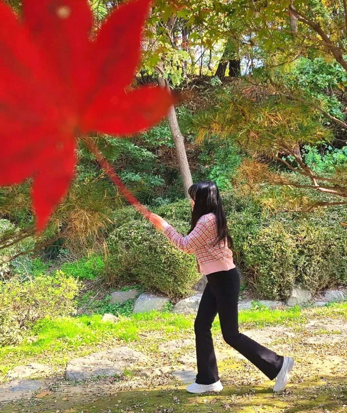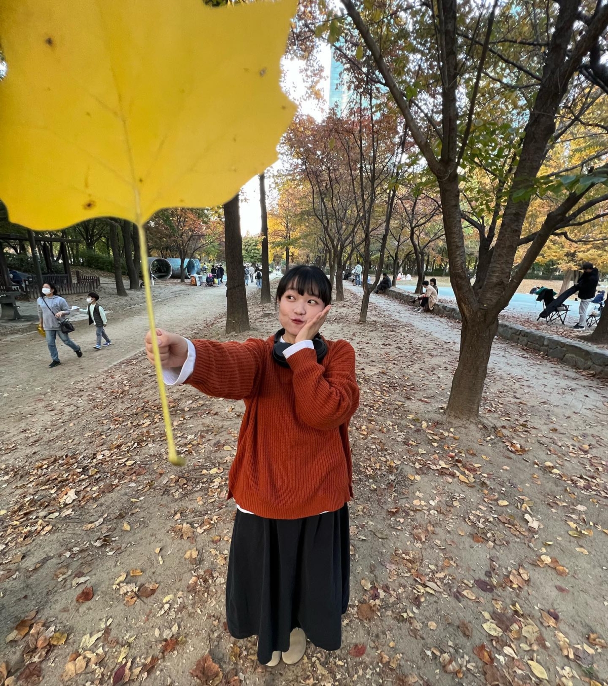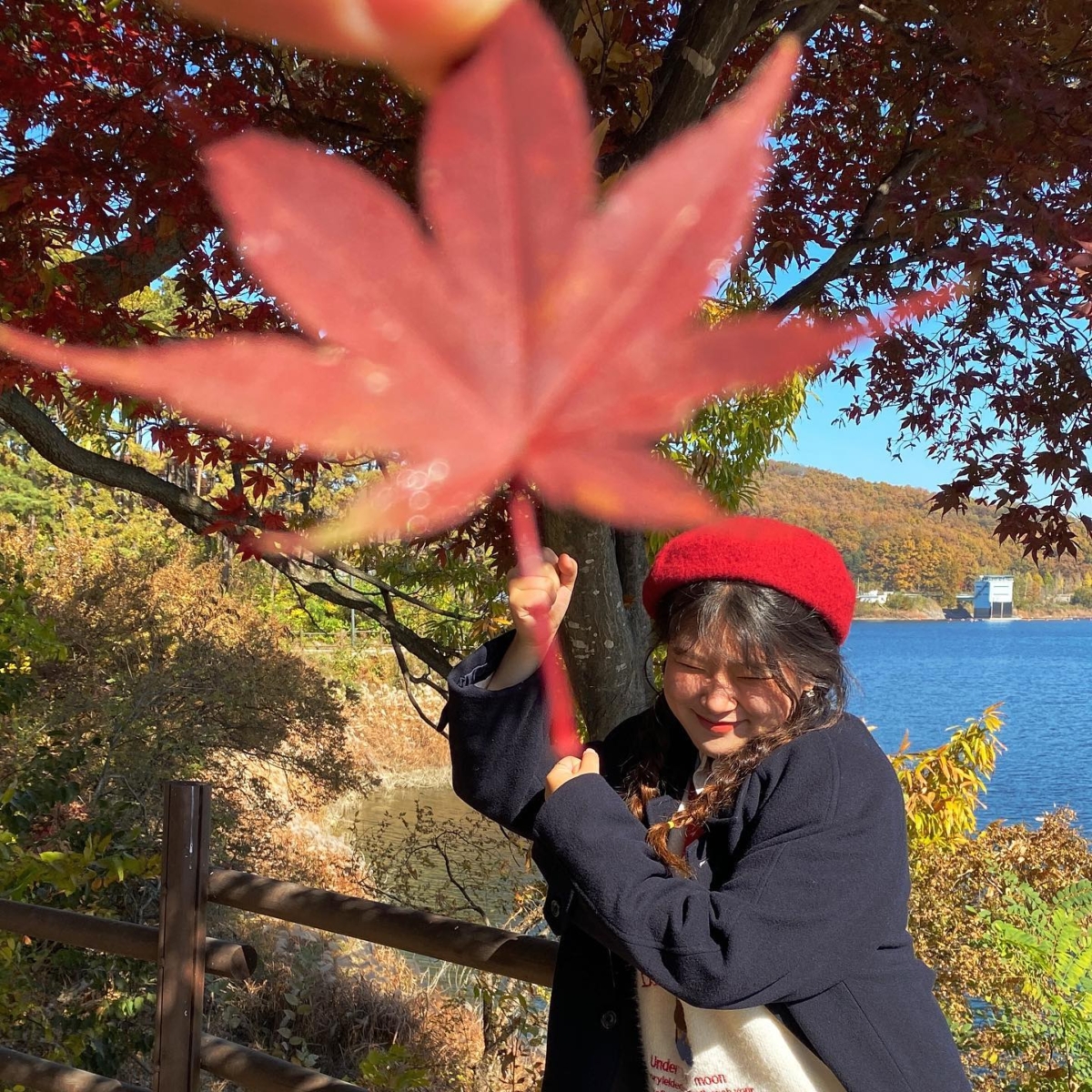 韓國最近就十分流行一種名為「대왕단풍샷」的打卡方法,更是秋天賞楓葉限定打卡法!整體畫面變到超可愛又有動感~首先在地上找一塊漂亮又色彩鮮艷的落葉!
