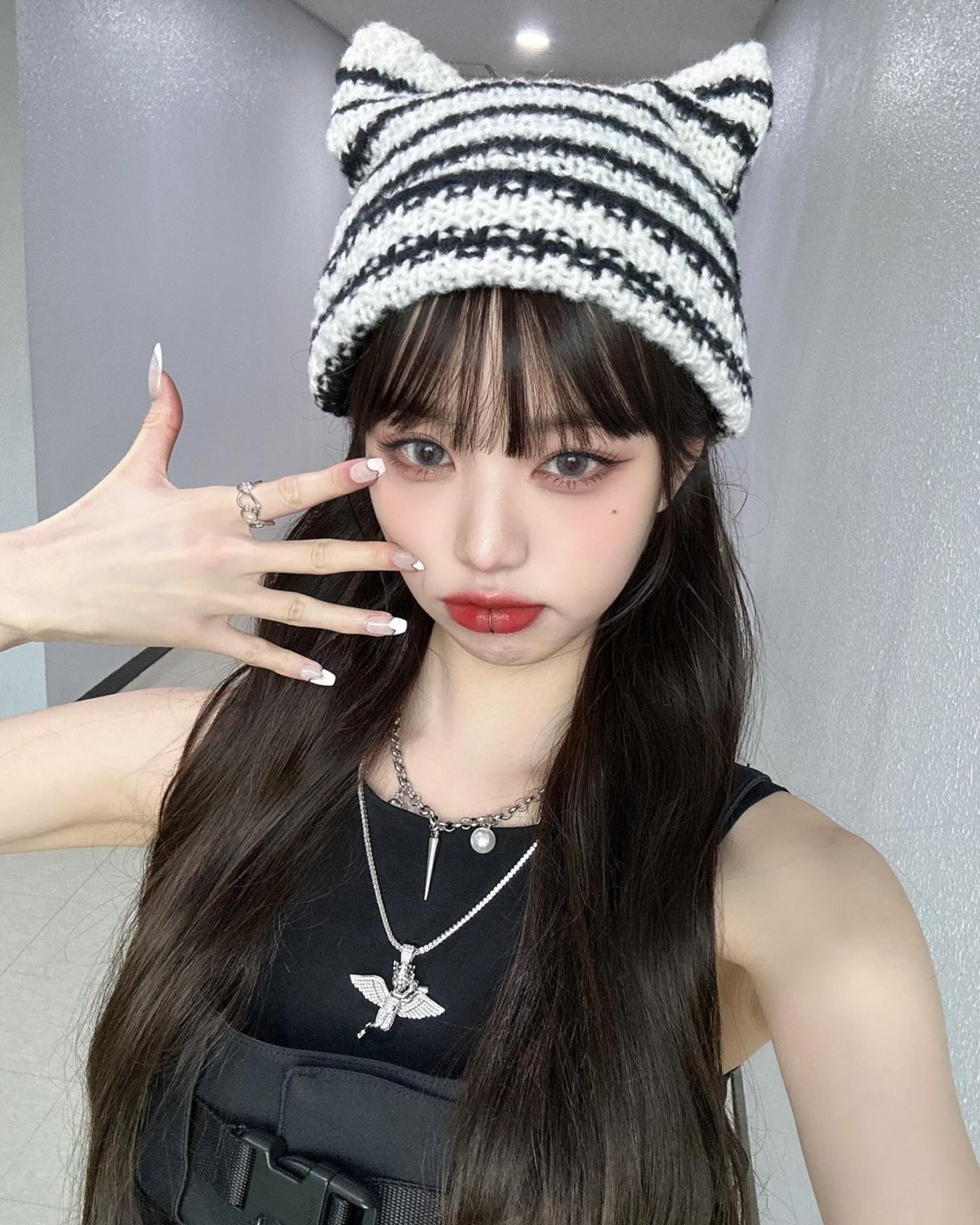 如果天氣再寒冷一點的話,就可以試試這款巴拉克拉瓦冷帽(Balaclava),又被稱為「小偷帽」。以頭套的設計,將頭部完全包覆住,保暖功效絕對足夠!不少明星也相繼戴上並搭配出各種時尚造型,十分適合出遊時戴。像Nayeon的兔耳巴拉克拉瓦帽也是相當可愛呢~