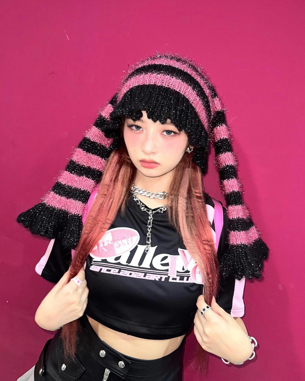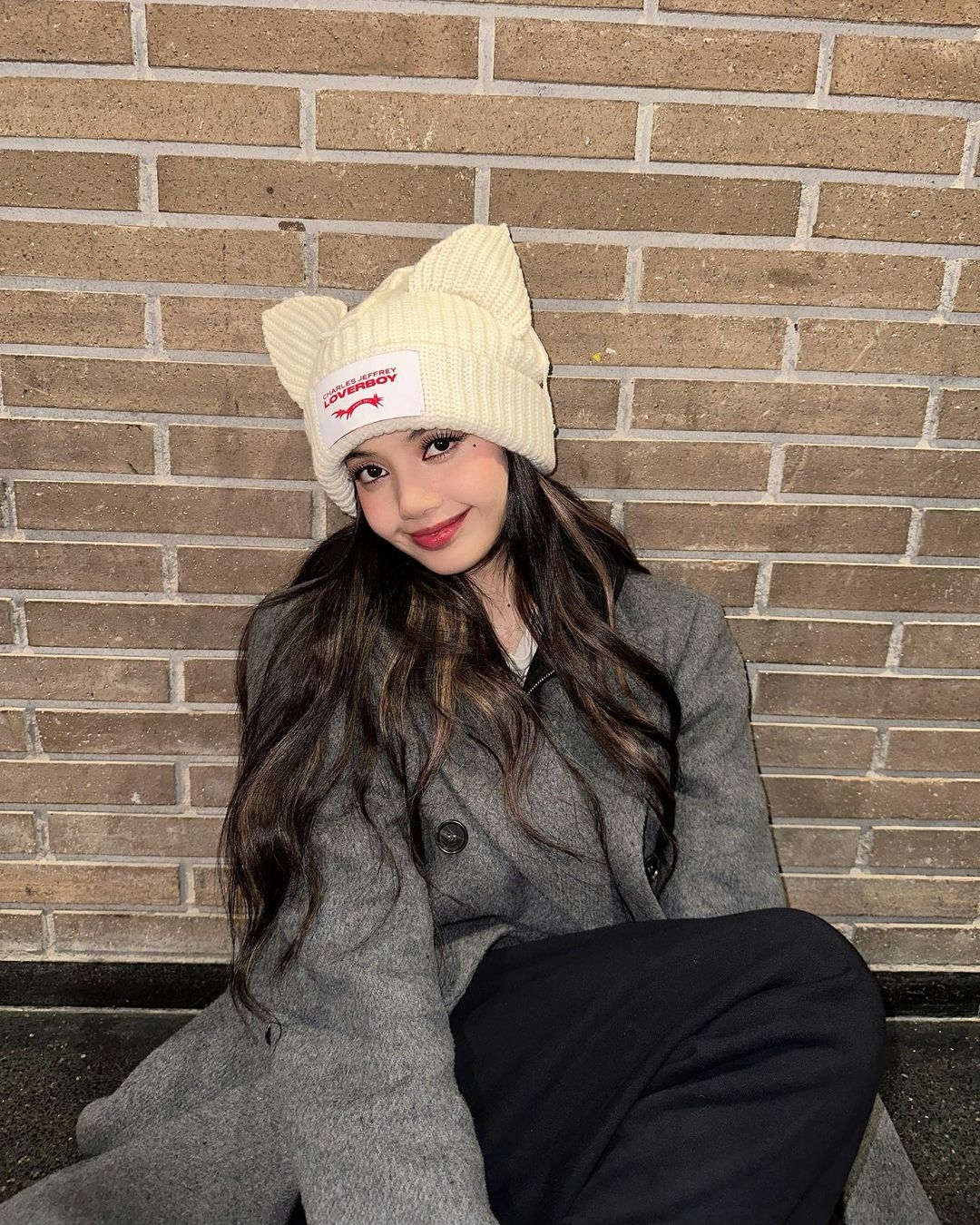 除了貓耳冷帽,另一款超可愛的長兔耳冷帽也是明星大愛的款式,兩邊垂下來的長耳朵,設計得意又不誇張,令日常穿搭增添一點搞怪、可愛的感覺!加上顏色鮮艷的配色,Y2K感滿滿~難怪明星們都紛紛戴上它。