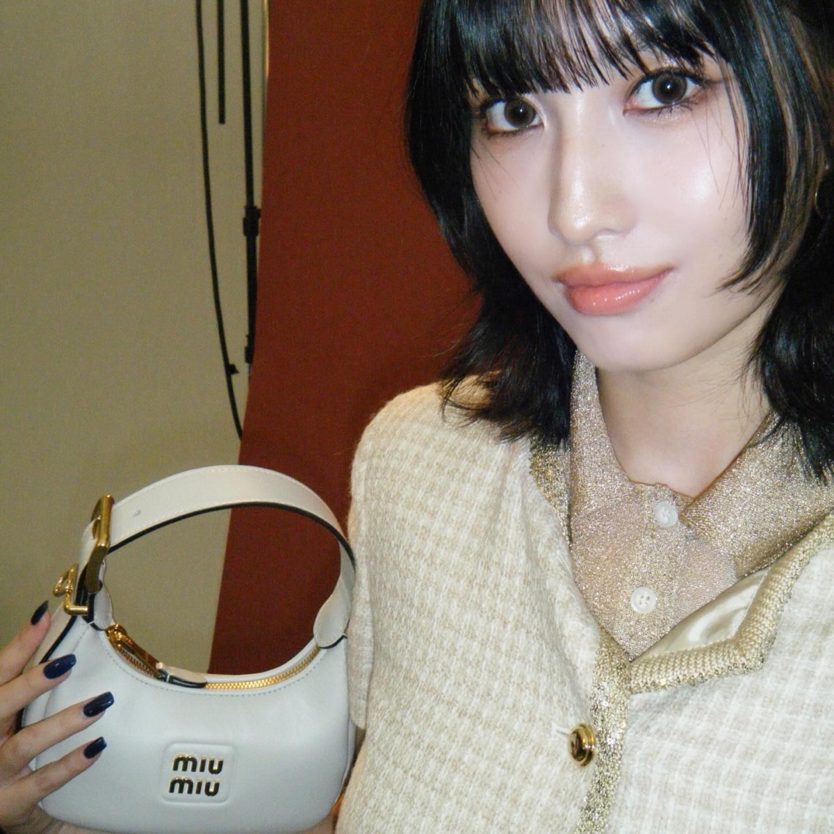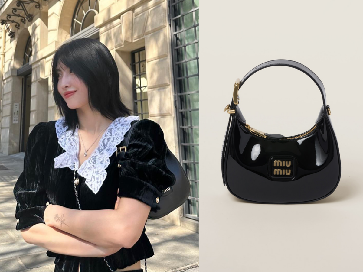 可愛的小廢包也是衣櫃必備的一款袋~而miumiu這款經典新月包雖然尺寸比較小巧,對比起常見的皺褶款,這款則較為低調、成熟一點,但同樣精緻!以漆皮為主,閃亮的包身搭配金屬的miumiu Logo,非常有辨識度。就算是手提或斜孭都好看,像張員瑛就有用過啡色皮革款;Momo則使用過黑色漆皮款,日常穿搭也是十分百搭,CP值超高~