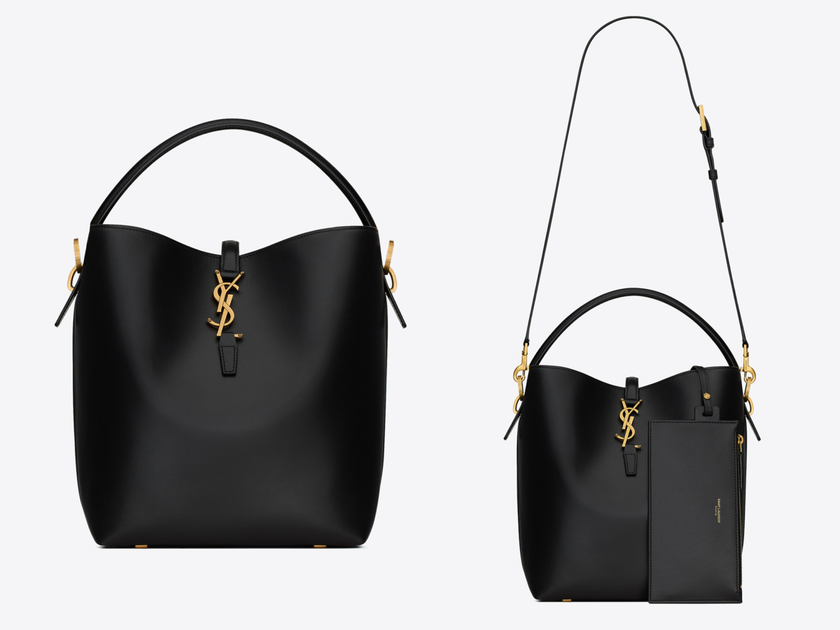 YSL新款 LE 37水桶袋絕對是今年的大熱之選,就連 BLACKPINK Rosé和 LE SSERAFIM 的Kazuha都愛用它!包身以黑色亮面光澤感皮革製成,搭配金屬CASSANDRE鉤扣,低調又優雅,加上「L」開合設計,十分方便~連內裡都是用了黑色麂皮,並附有一個印有「SAINT LAURENT PARIS」金色標誌的拉鍊小袋,很有質感!而LE 37水桶袋配有手柄提把和可調節和可拆卸的皮革肩揹帶,大家可以自由選擇揹法,超百搭!一共推出了3個尺寸,分別是中號、小號和迷你。