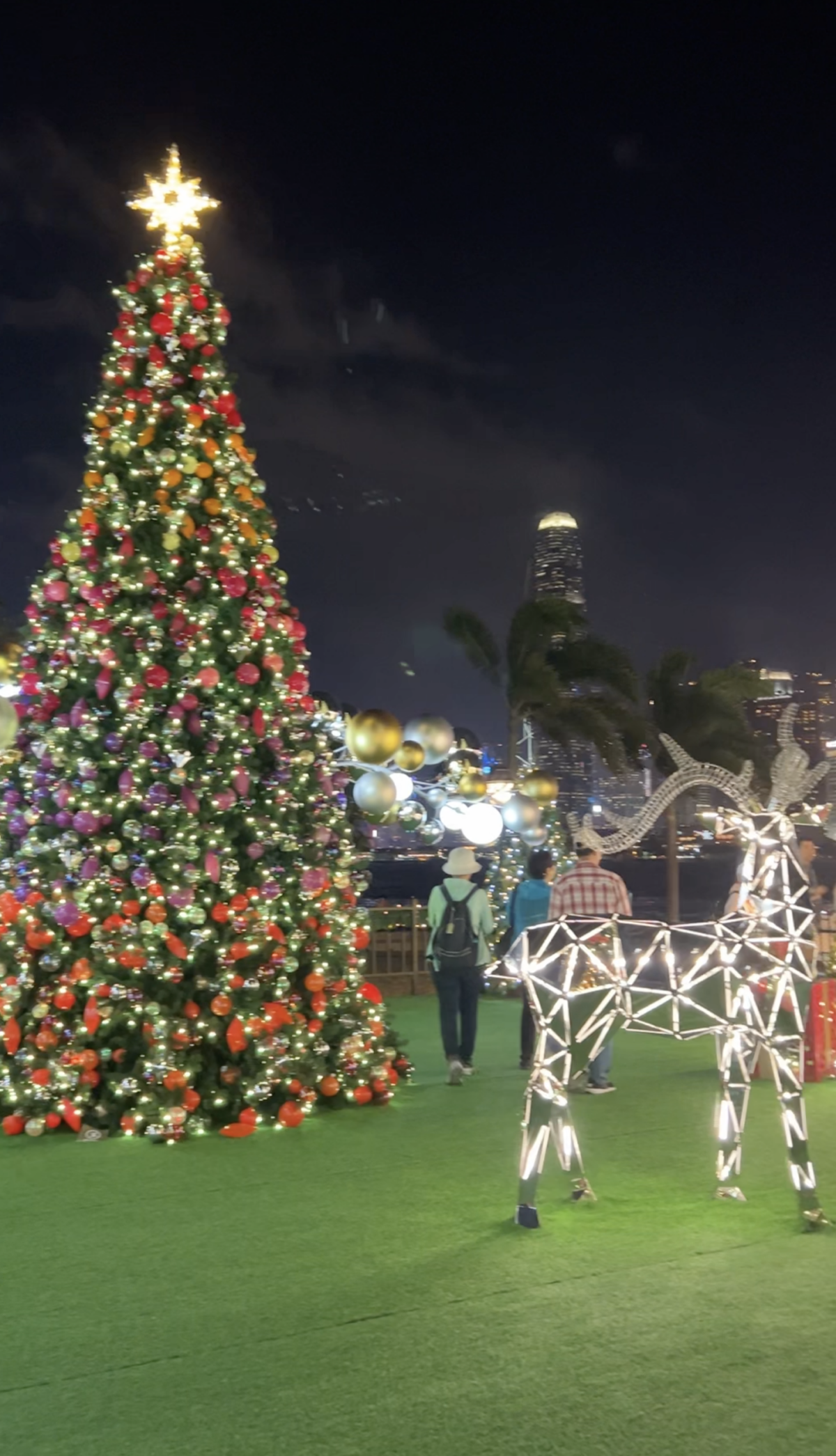 西九文化區藝術公園變身聖誕小鎮,萬眾期待的全港最高20米聖誕樹再次亮相!樹身掛滿幻彩燈飾,樹頂更有巨型五角星作點綴,入夜後綻放炫目光芒~周圍亦有不同造型的小型聖誕樹、馴鹿、聖誕小屋等,絕對是聖誕打卡熱點!